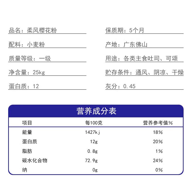 📚 王后柔风樱花粉25kg 高筋小麦面粉土司披萨面包材料家用烘焙原料