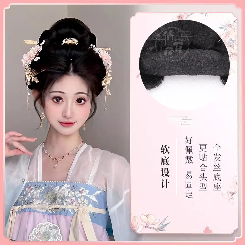 📚 古装汉服假发明宋制古风懒人一体式全发丝唐风软底发髻垫发包女