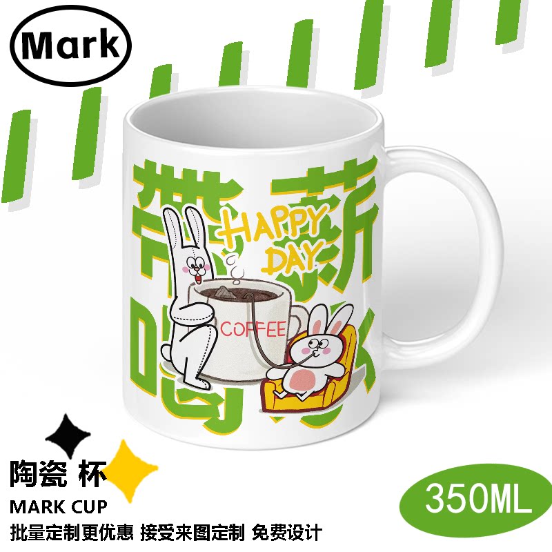 📚 带薪喝水马克杯打工人水杯带盖搞怪加薪水陶瓷杯喝掉焦绿杯子水杯
