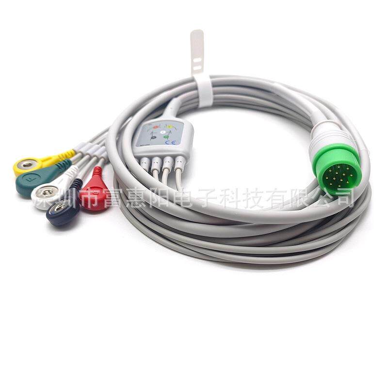 📚 兼容宝莱特Q5A3A5A6A8监护仪心电导联线一体五导扣子带加密