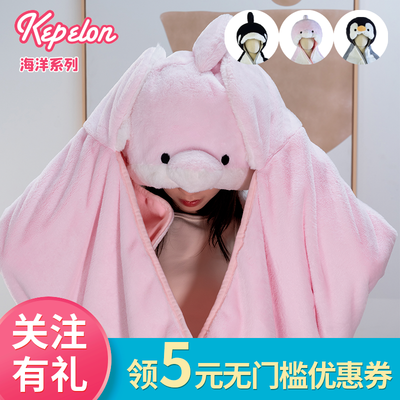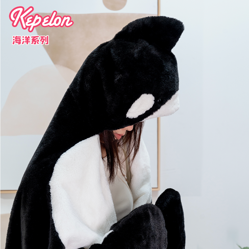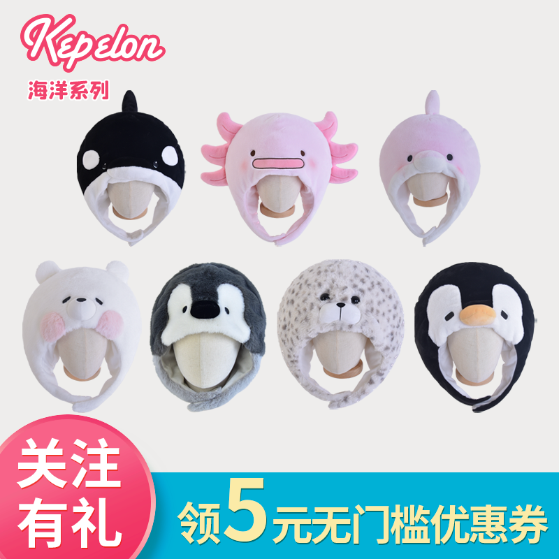 📚 正版海洋动物海豚北极熊保暖帽子钝口螈杀人鲸头套加绒披风摆拍