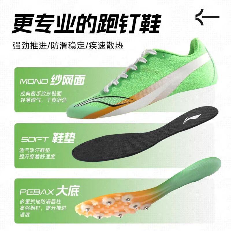 📚 李宁钉鞋田径短跑男精英钉子鞋专业体育生专用跑步跳远跳高中长跑