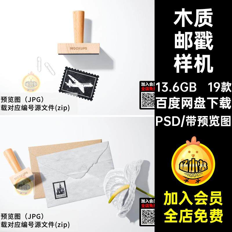 📚 19款文具邮戳样机信封PSD复古木质盒手创psd账效果图印章素材logo