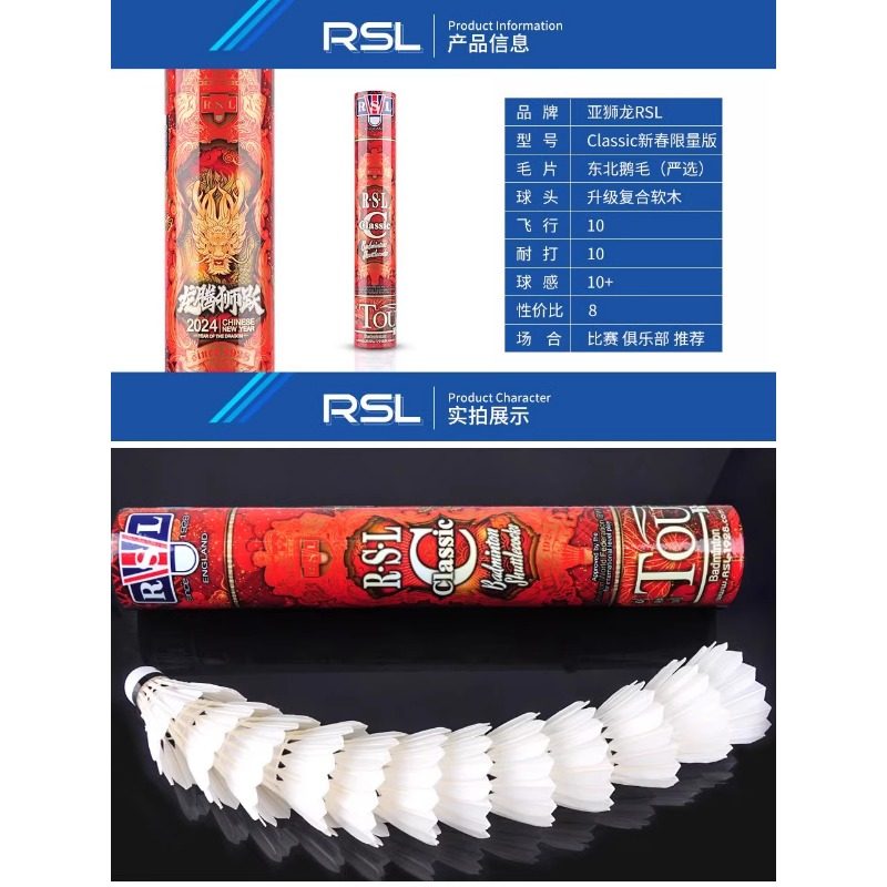 📚 亚狮龙龙年限定版羽毛球Classic新年新春贺岁版专业耐打鹅毛球RSL