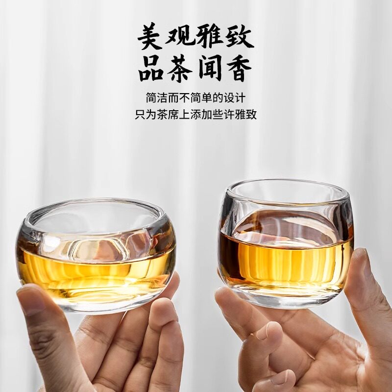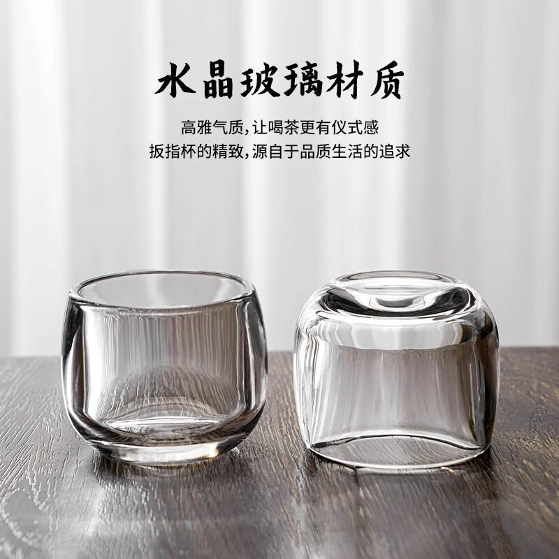 📚 水晶扳指杯高档玻璃主人杯个人杯专用单杯加厚防烫透明功夫小茶杯
