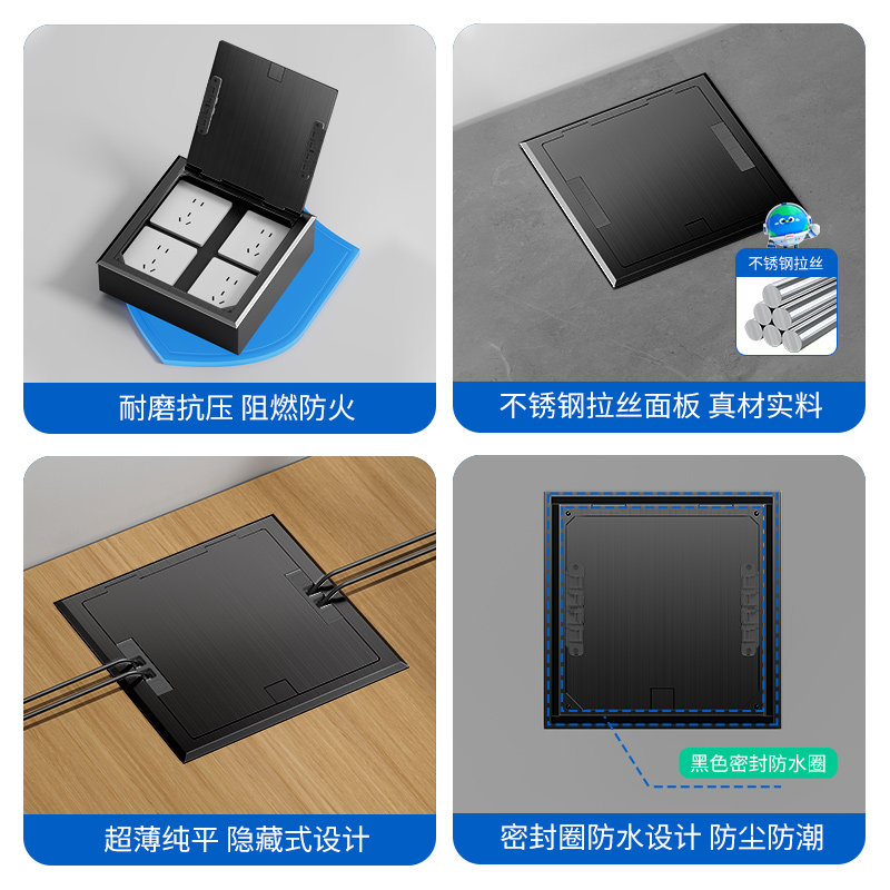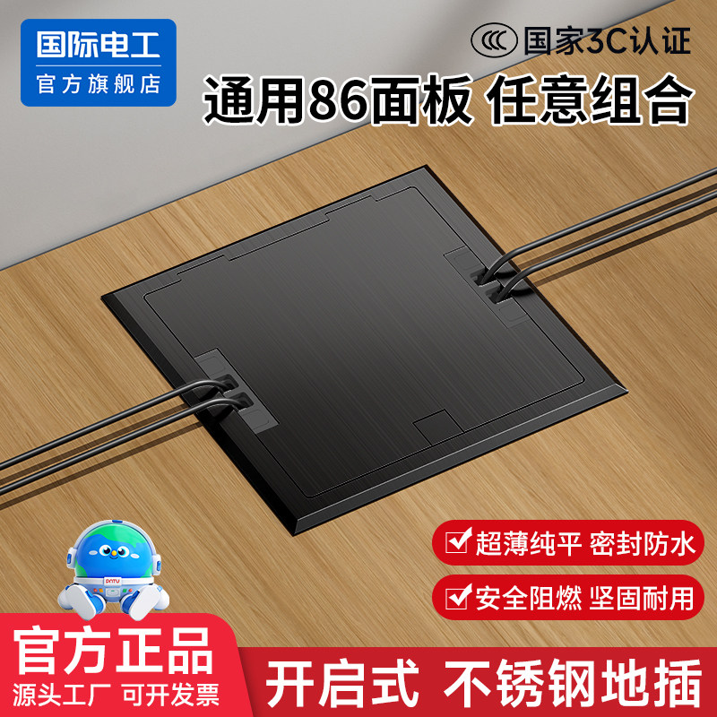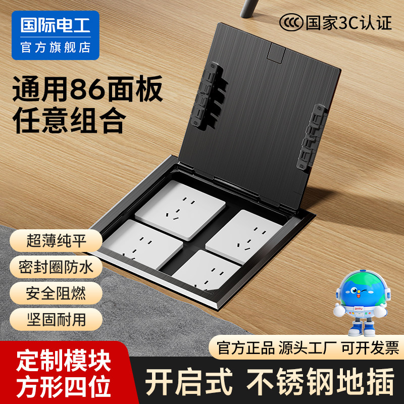 📚 国际电工开启式地插座隐形嵌入式底盒不锈钢纯平1234位86型面板