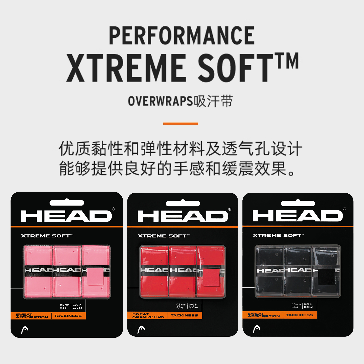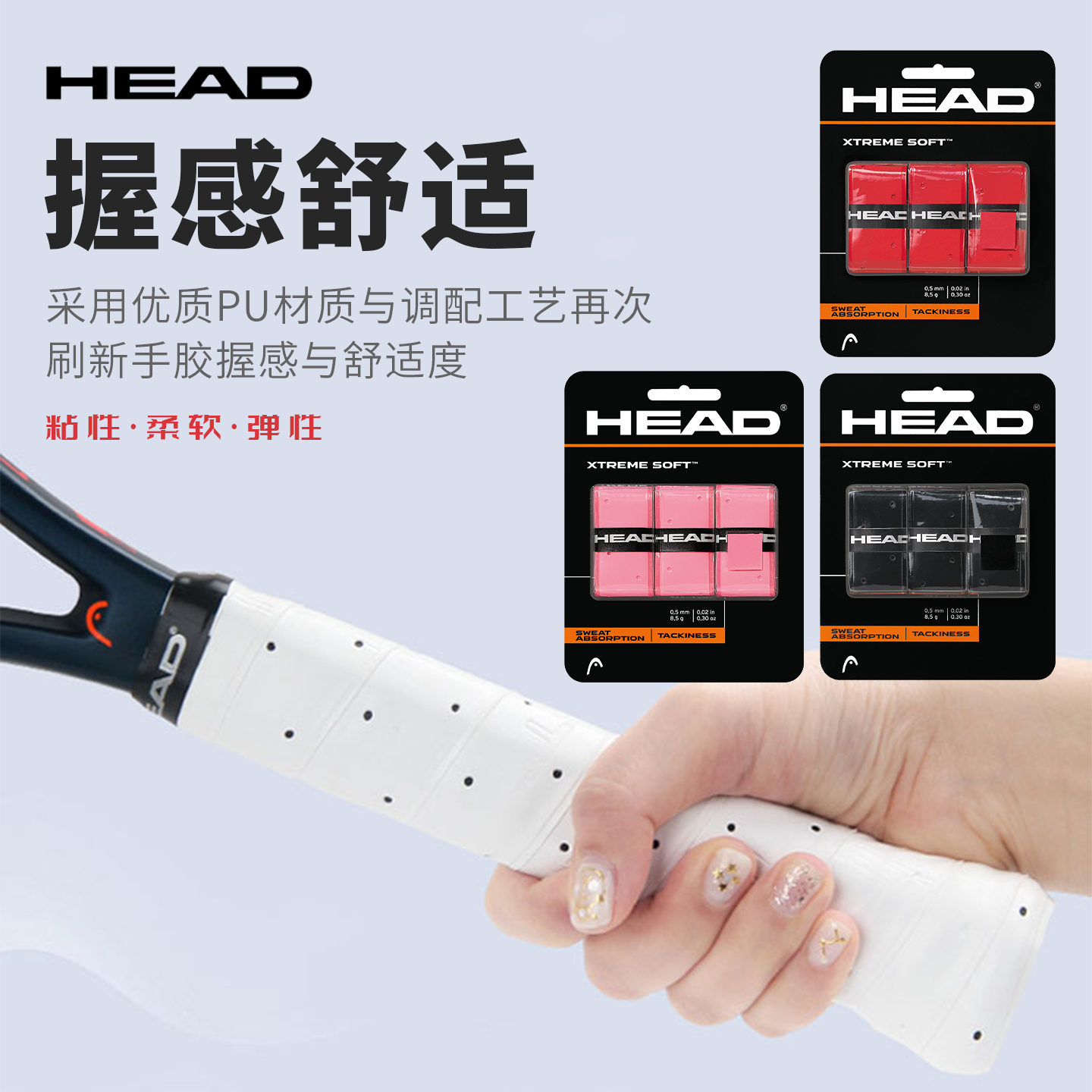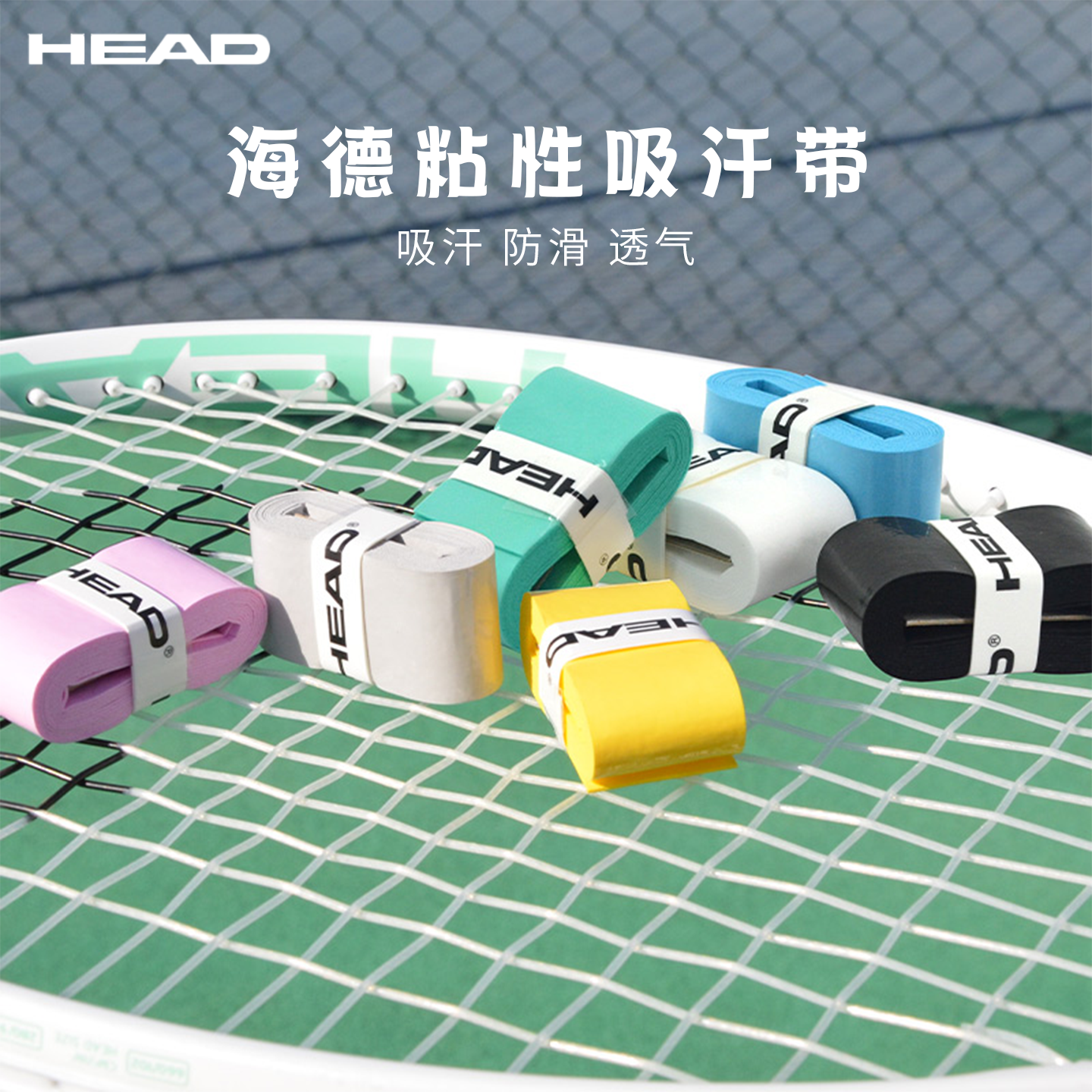 📚 HEAD海德手胶吸汗带羽毛球网球拍粘性打孔鱼竿握把胶防滑耐磨