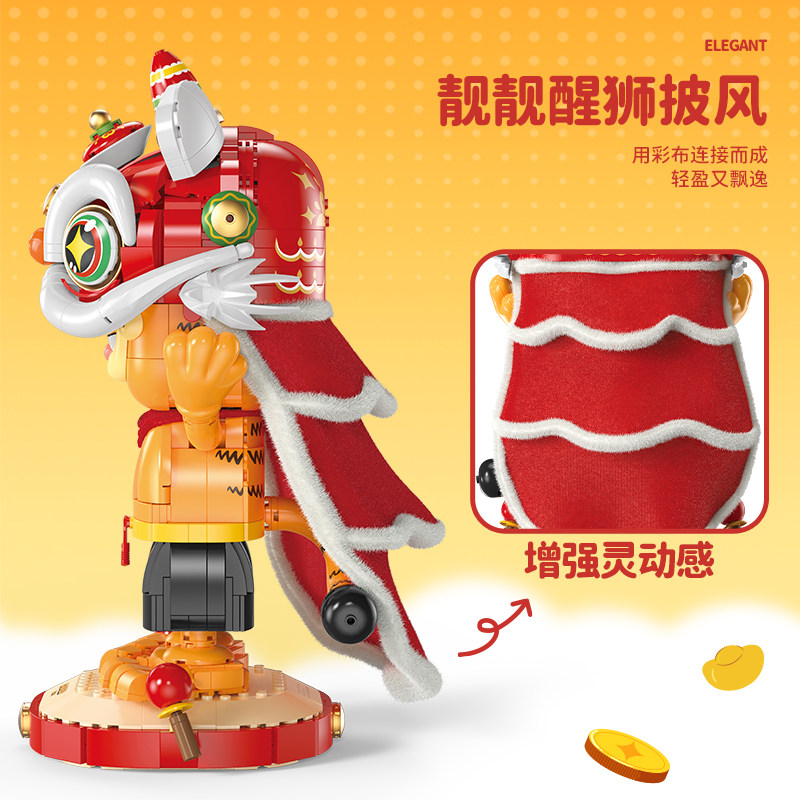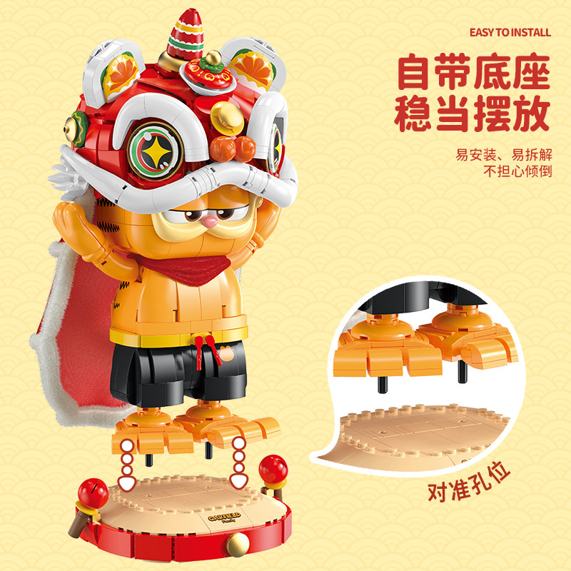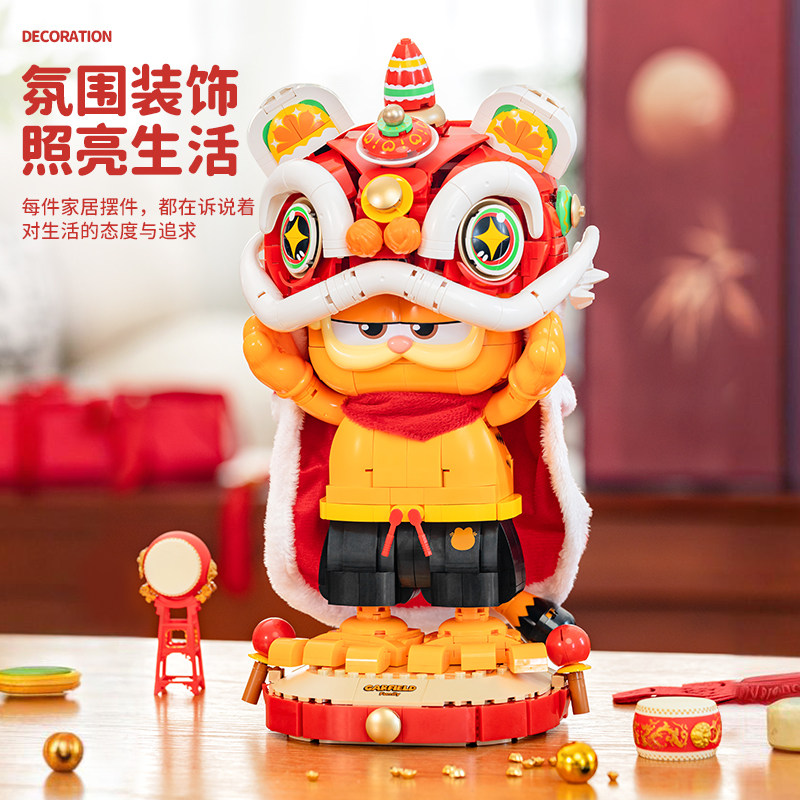 📚 费米加菲猫国潮积木舞狮加菲猫摆件手办玩具新年礼物