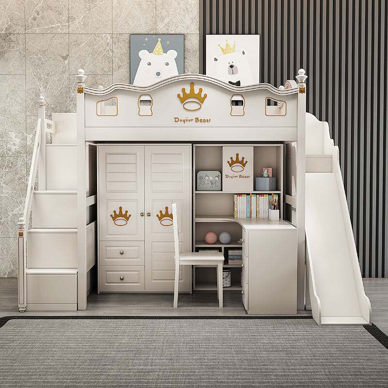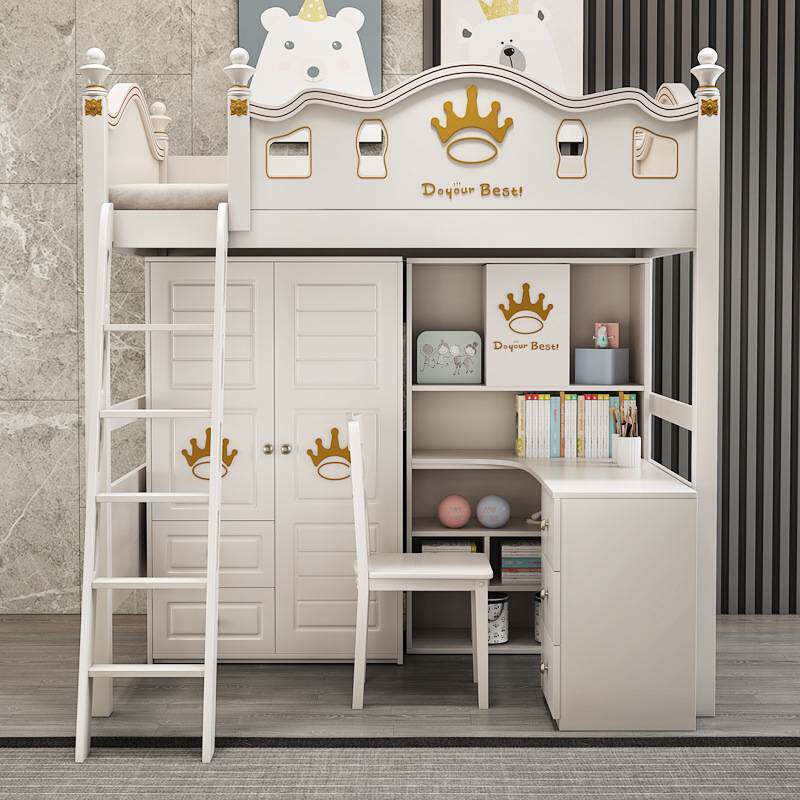 📚 美式上床下书桌一体成人组合床高低铺床双层床带衣柜高架床儿童床
