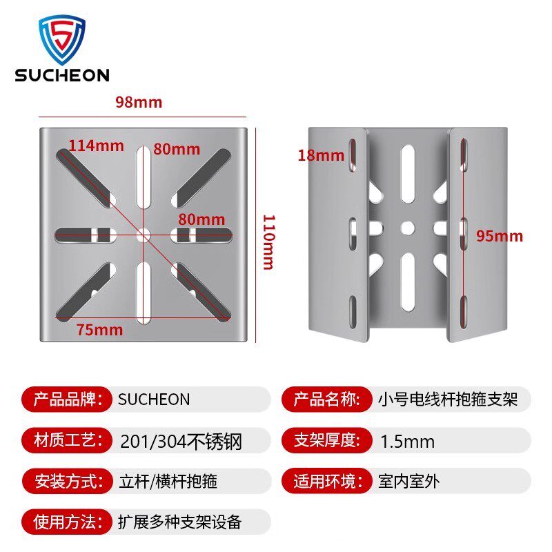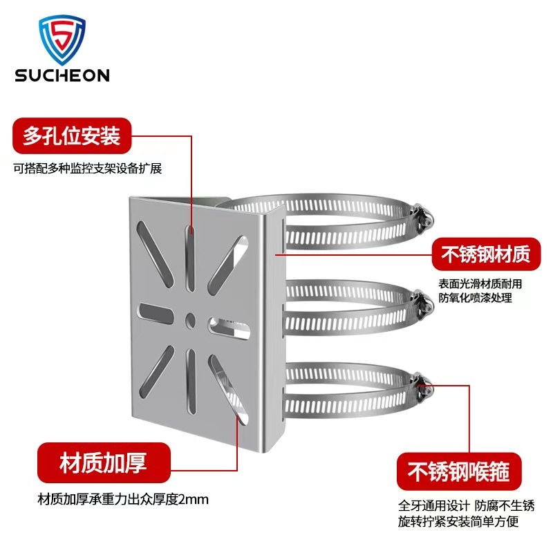 📚 监控抱箍平板304不锈钢摄像头支架球机枪机立杆路灯杆电线杆抱柱