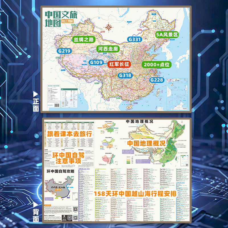 📚 2026中国自驾游全攻略地图国道线含G219边境线/G331东北/318川藏线/G228沿海 中小学课本景点标注研学旅行手绘路线住宿加油站标识