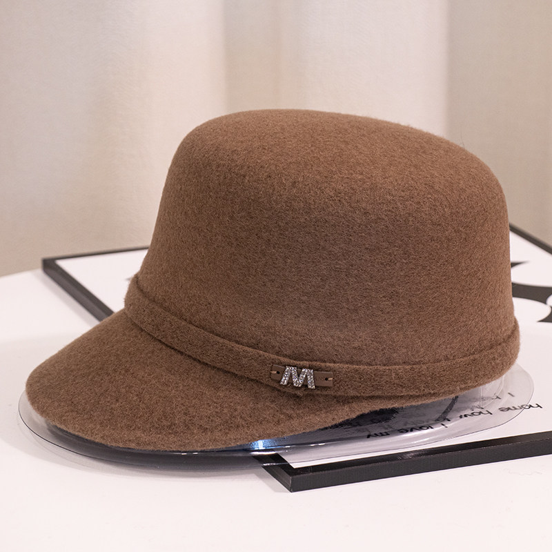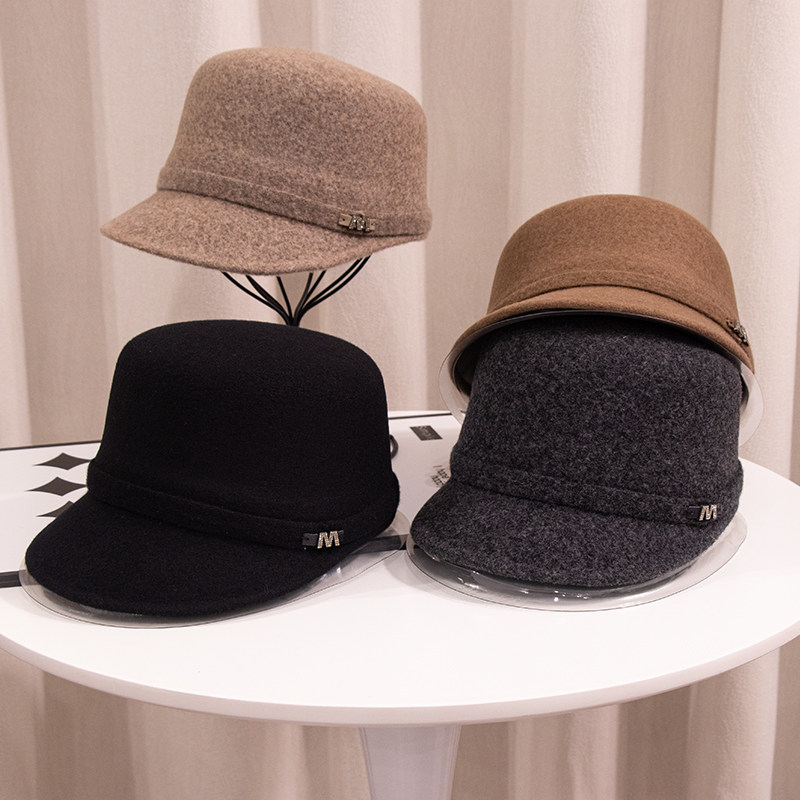 📚 皮卡罗秋冬女士时尚平顶帽子羊毛防寒保暖英伦马术帽鸭舌棒球帽M
