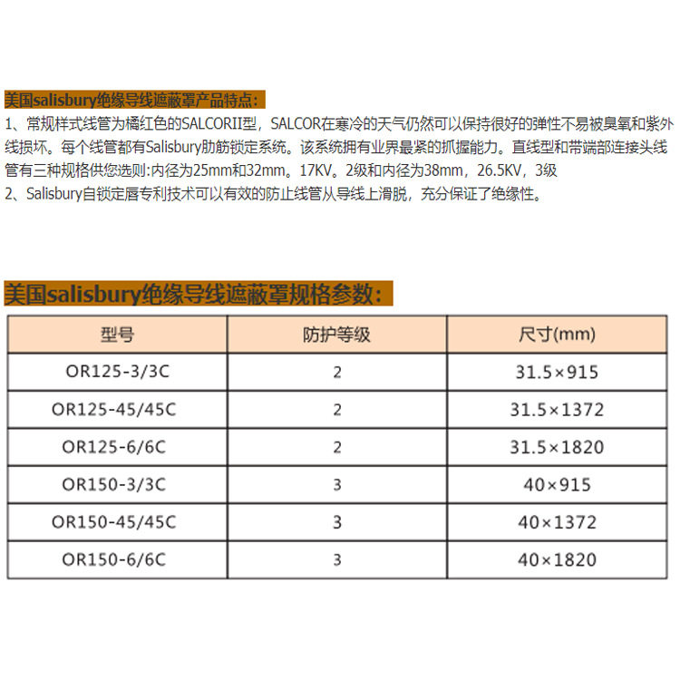 📚 OR150-45导线遮蔽管带端部连接头内径38mm在寒冷天气有良好弹性
