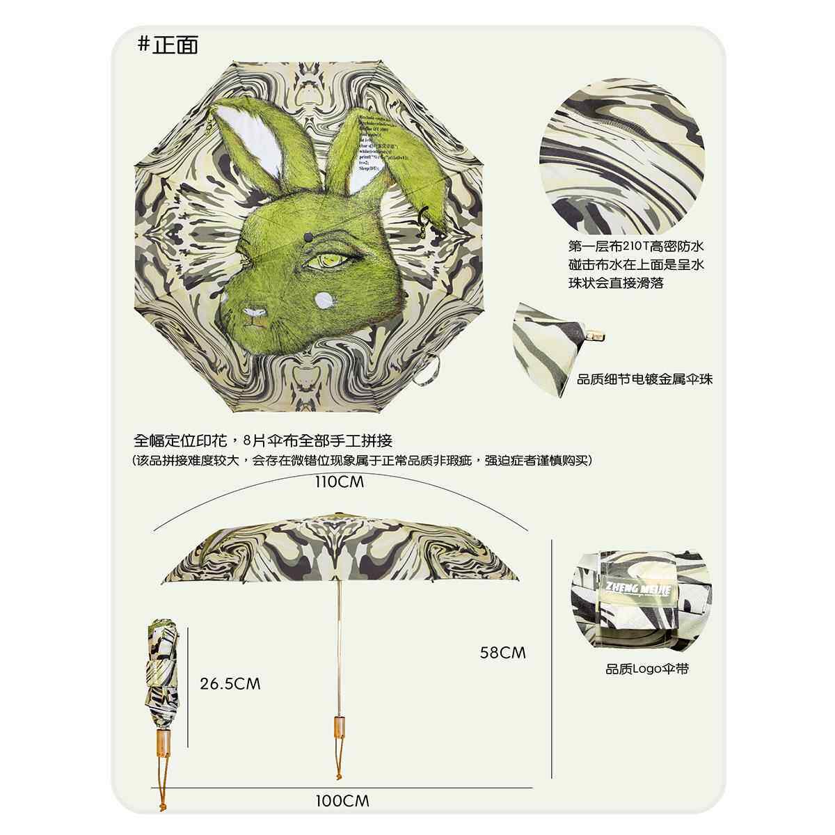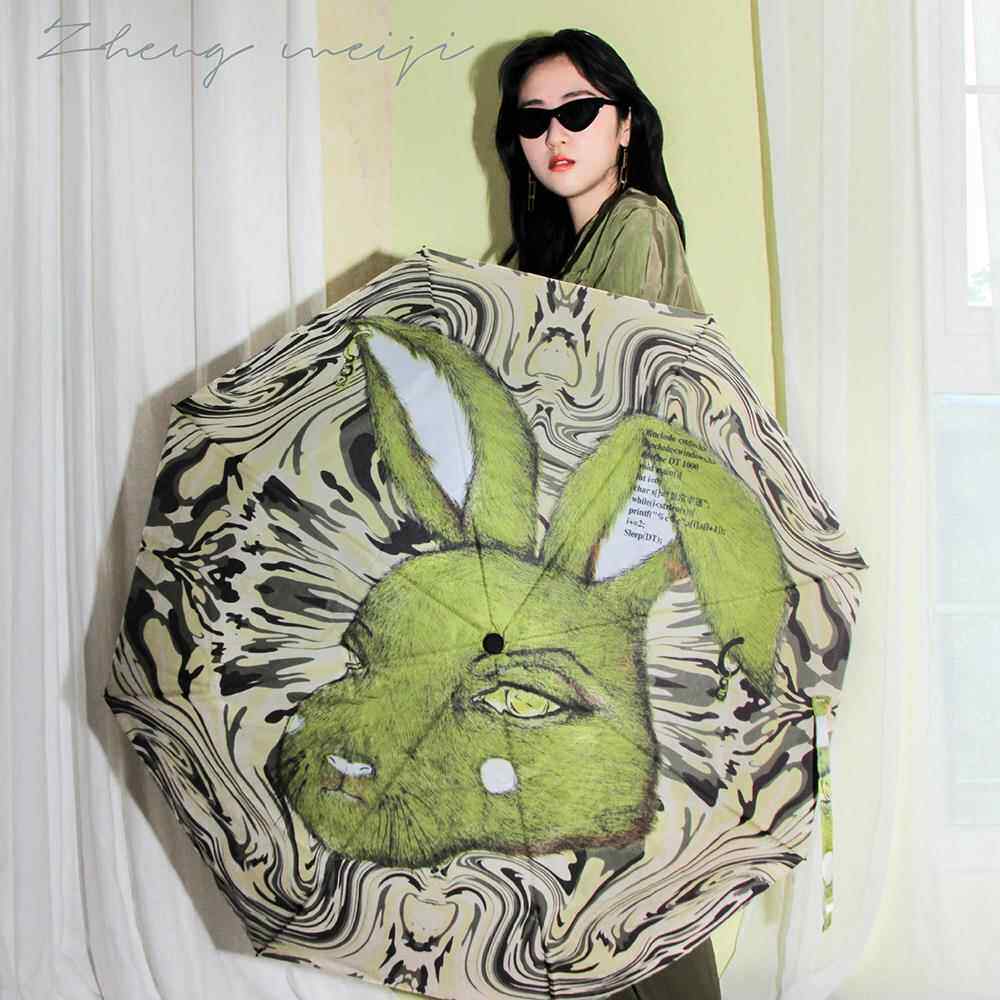 📚 郑梅杰设计魔迷可爱多幸运兔双层伞布折叠酷潮流防晒防紫外线晴雨