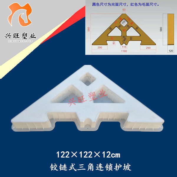 📚 三角铰链式生态护坡塑料模具 水泥联锁互锁块护坡模盒122*122*12