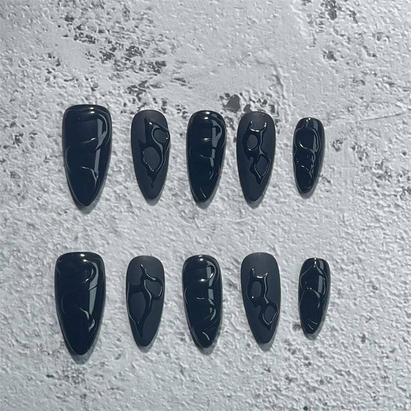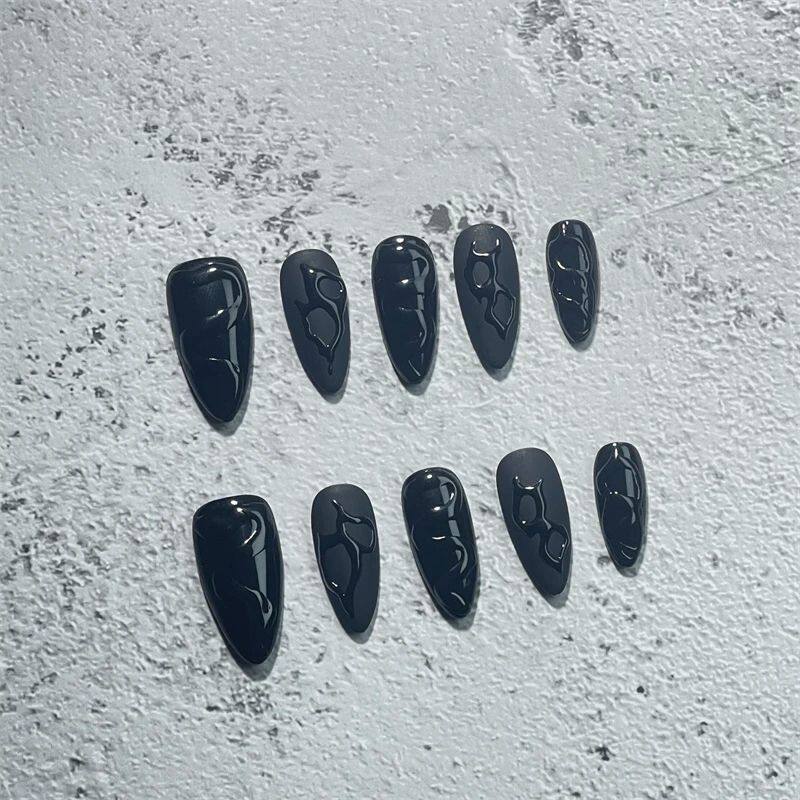 📚 Handmade Press on Nails Short Black Simple Reusable Adhesive