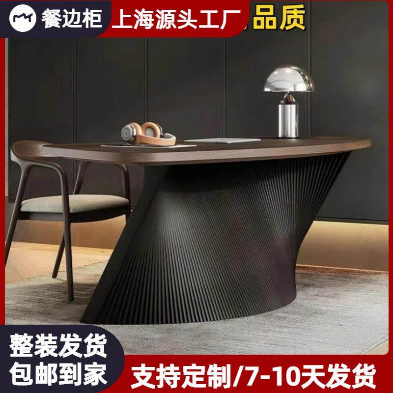 📚 北欧烤漆书桌实木老板办公桌简约家用写字台异形书法桌书画桌包邮