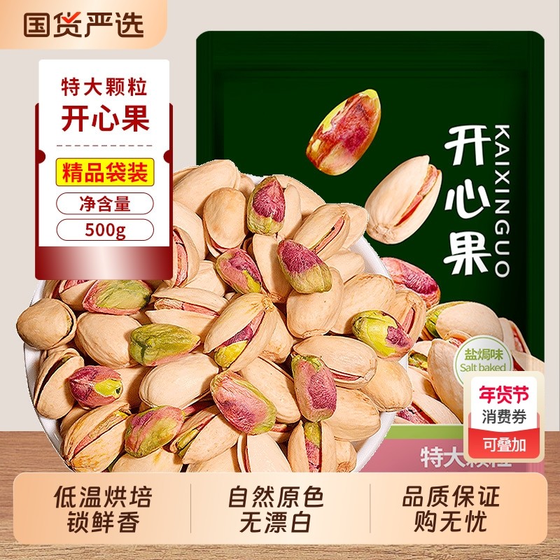 📚 特大颗粒开心果袋装500g干果散装称斤坚果炒货零食健康罐装果仁