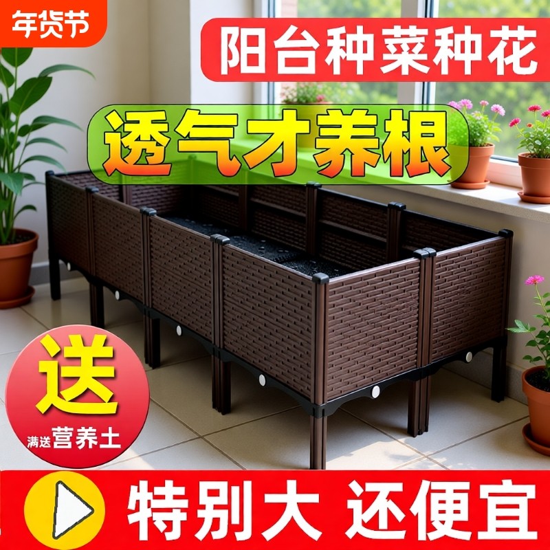 📚 种植箱阳台种菜专用箱楼顶塑料花盆家用大号花箱长方形种菜盆庭院