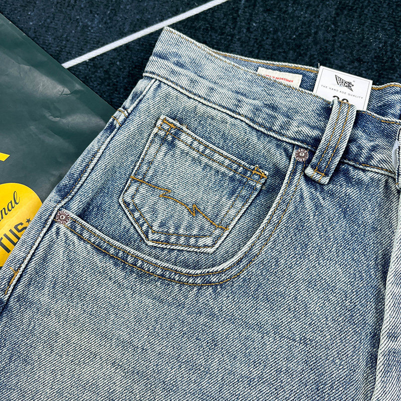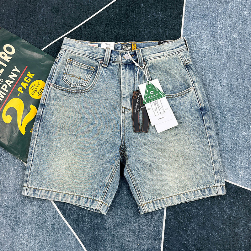 📚 美式复古牛仔短裤男水洗做旧宽松直筒休闲五分裤外穿夏季