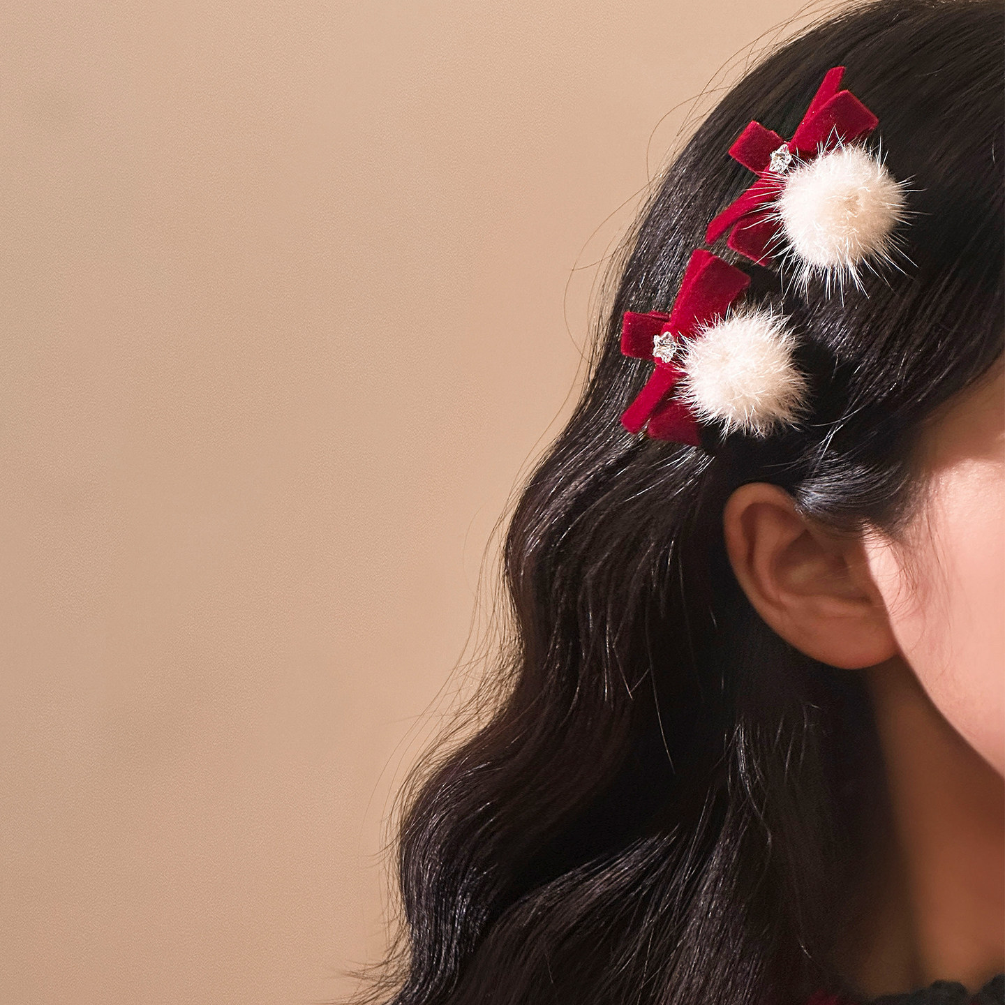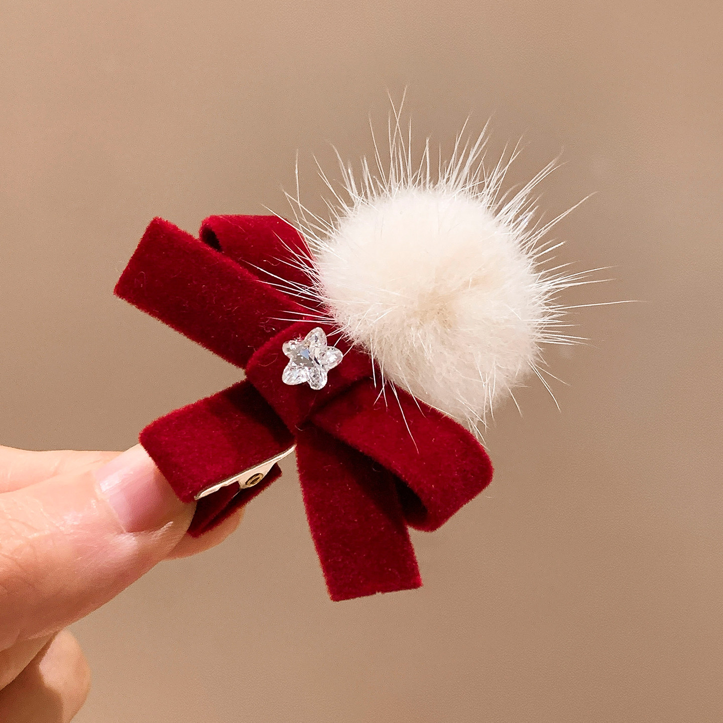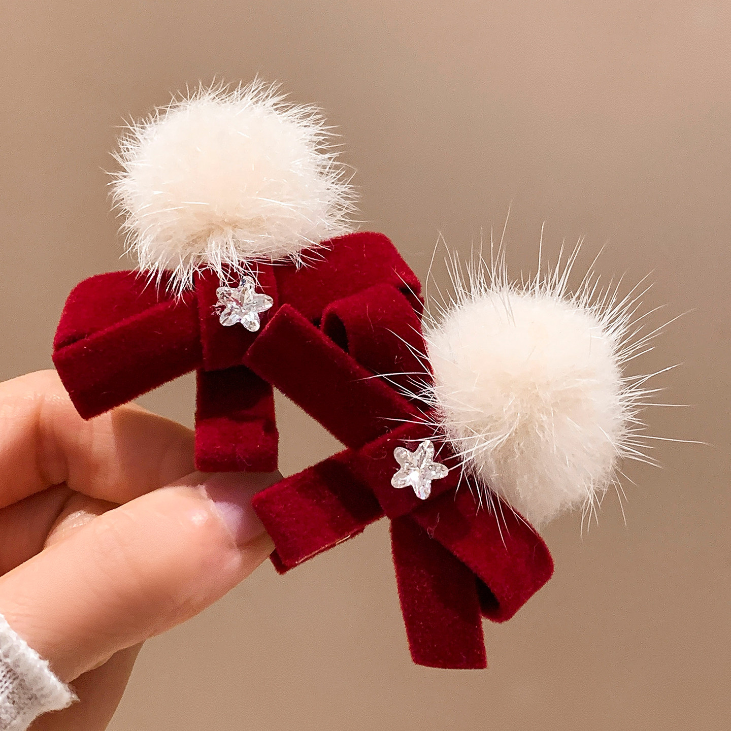 📚 可爱红色蝴蝶结毛球发夹女碎发刘海夹侧边发卡秋冬圣诞节新年头饰