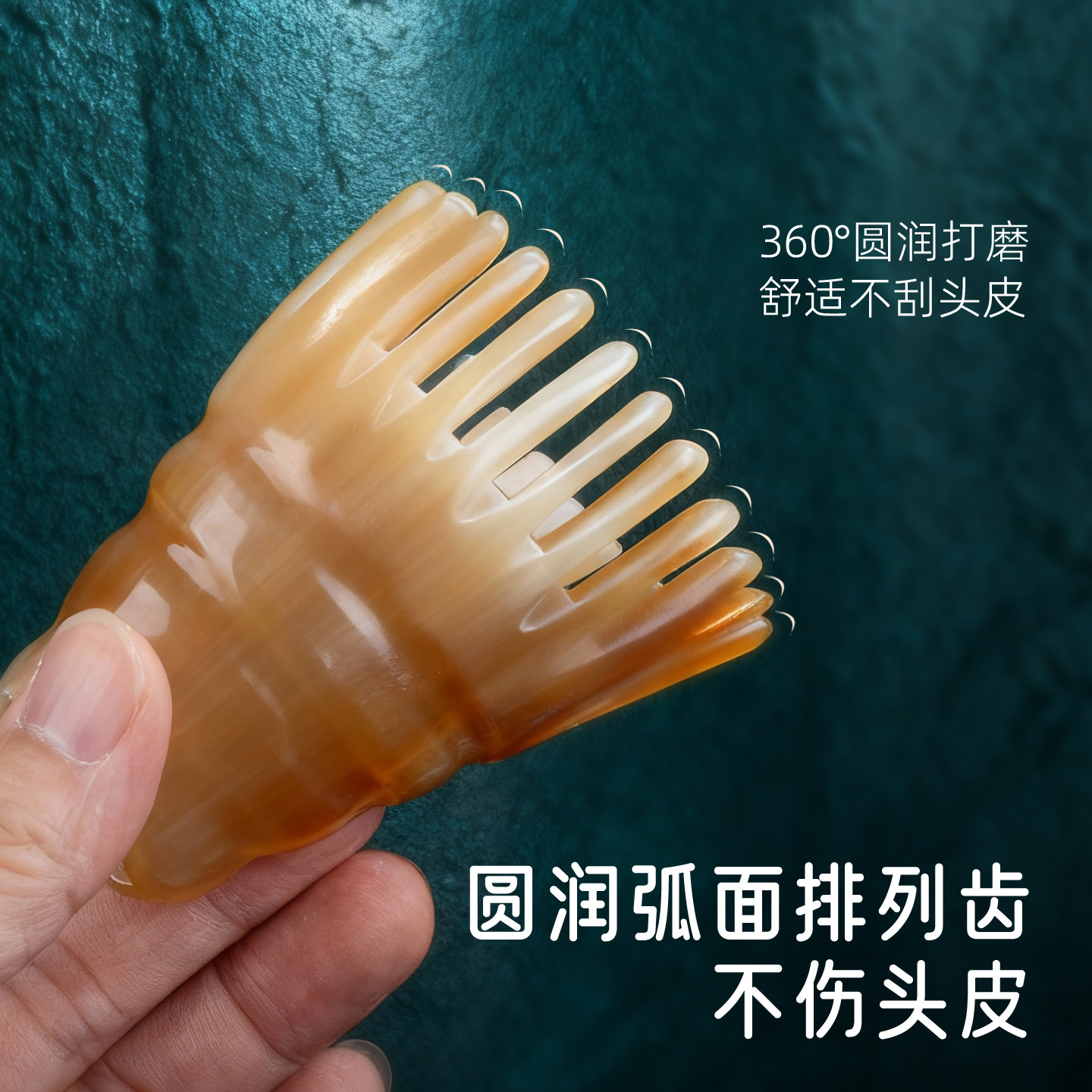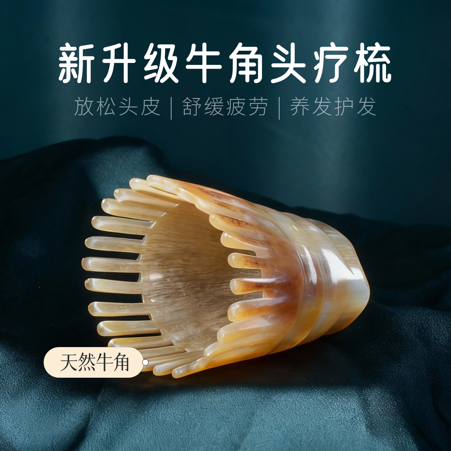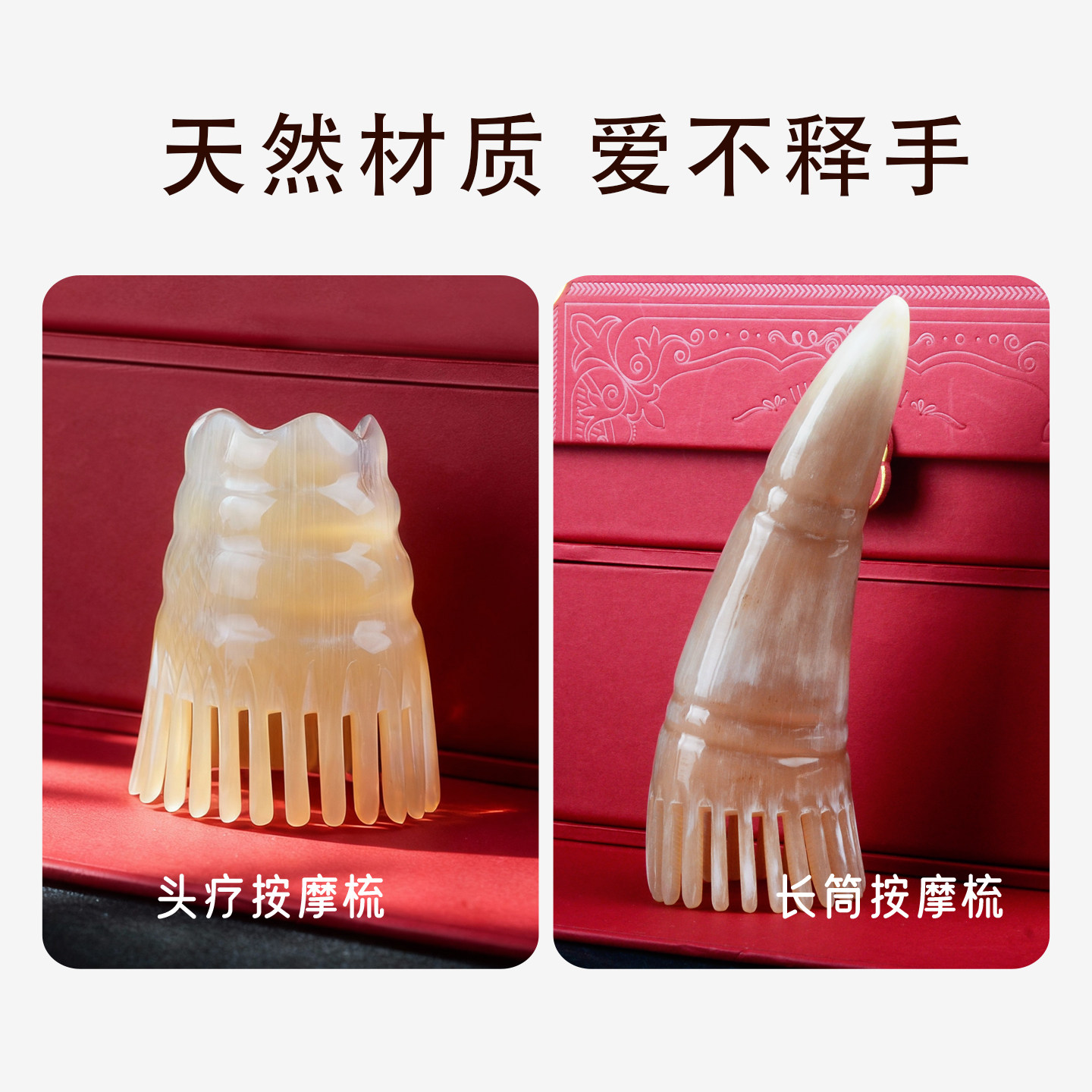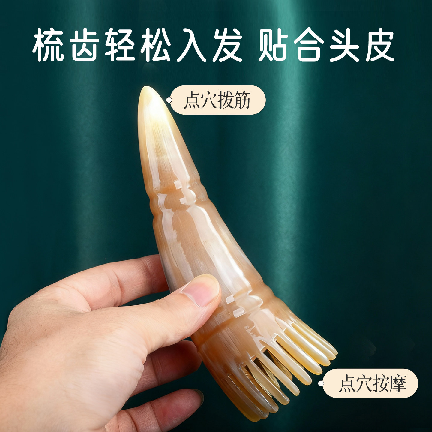 📚 天然牛角按摩梳头疗梳子经络疏通牛角梳正品抓洗头皮头部洗发梳子