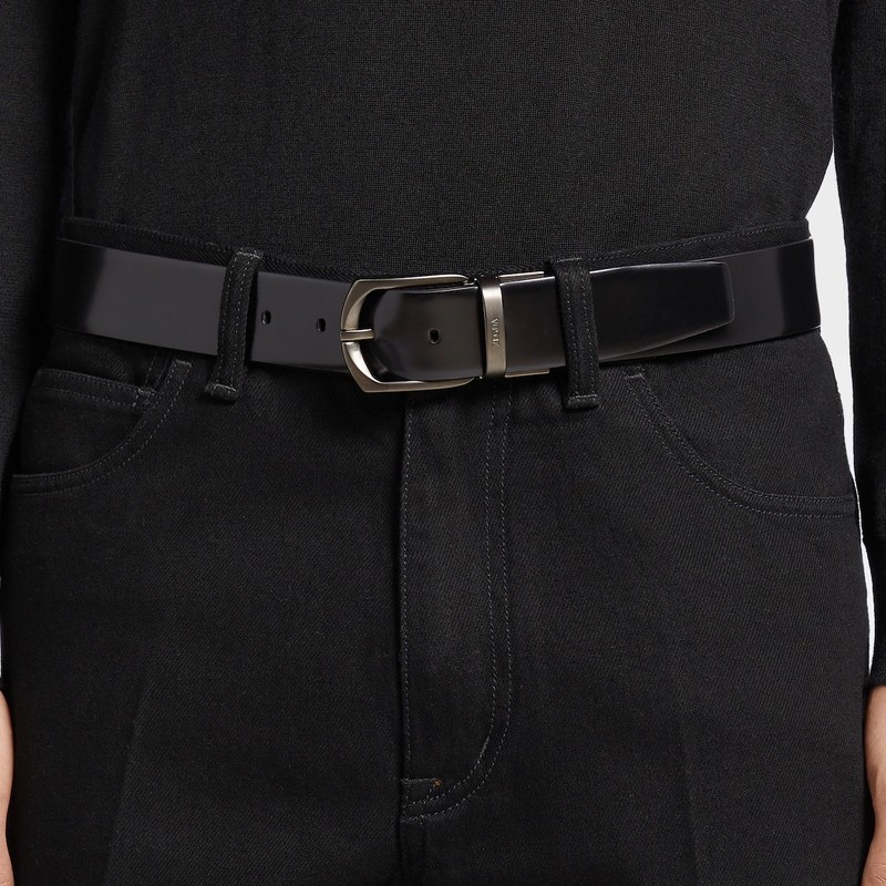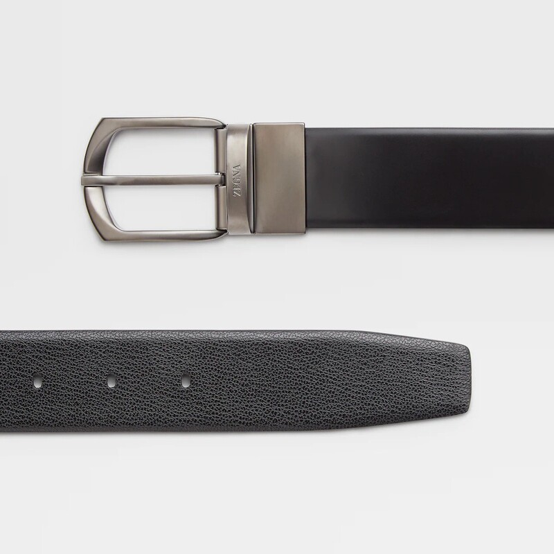 📚 礼物ZEGNA杰尼亚黑色皮革商务通勤男士双面皮带/腰带3.5CM宽