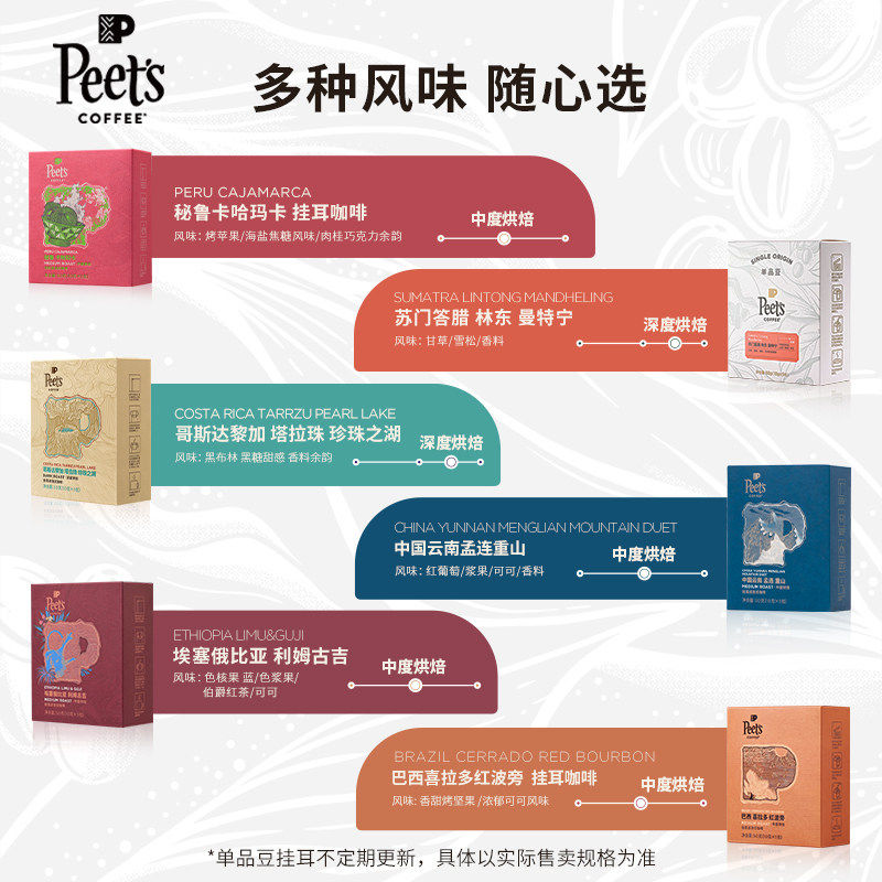 📚 Peets皮爷挂耳咖啡限定单一产地多风味精品现磨手冲挂耳咖啡包50g