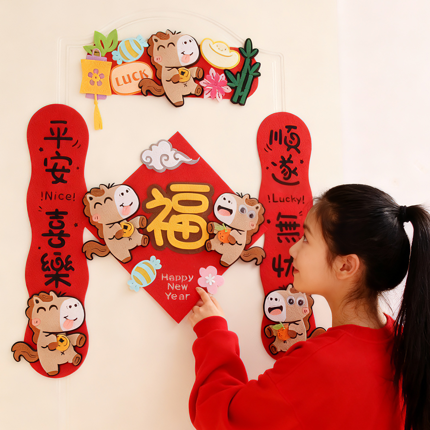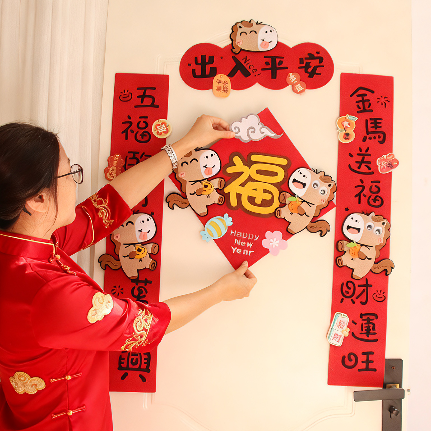 📚 2026马年新年装饰春联春节卡通磁吸对联过年福字门贴出入平安挥春