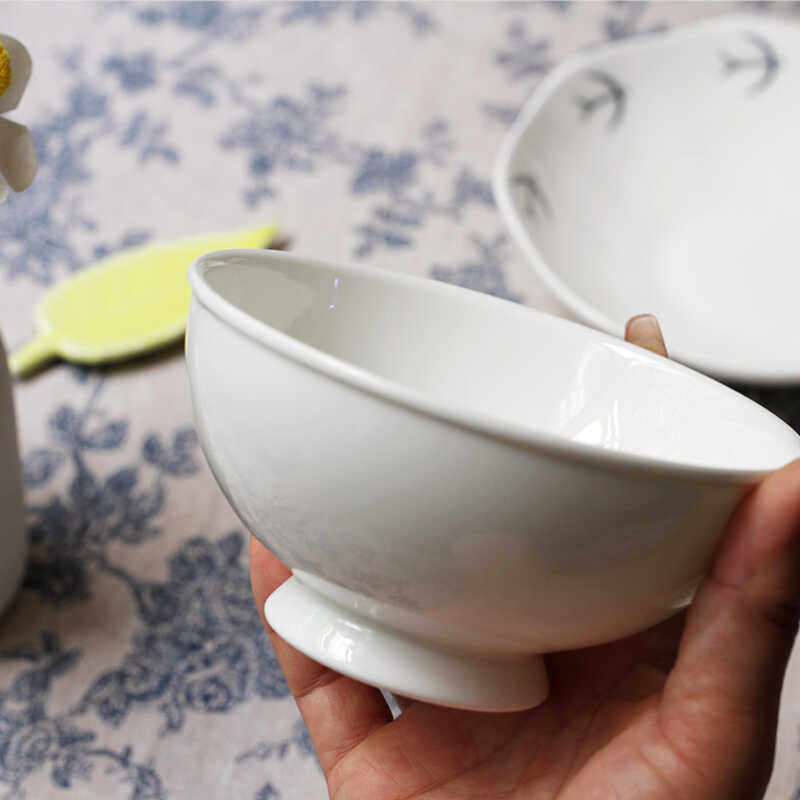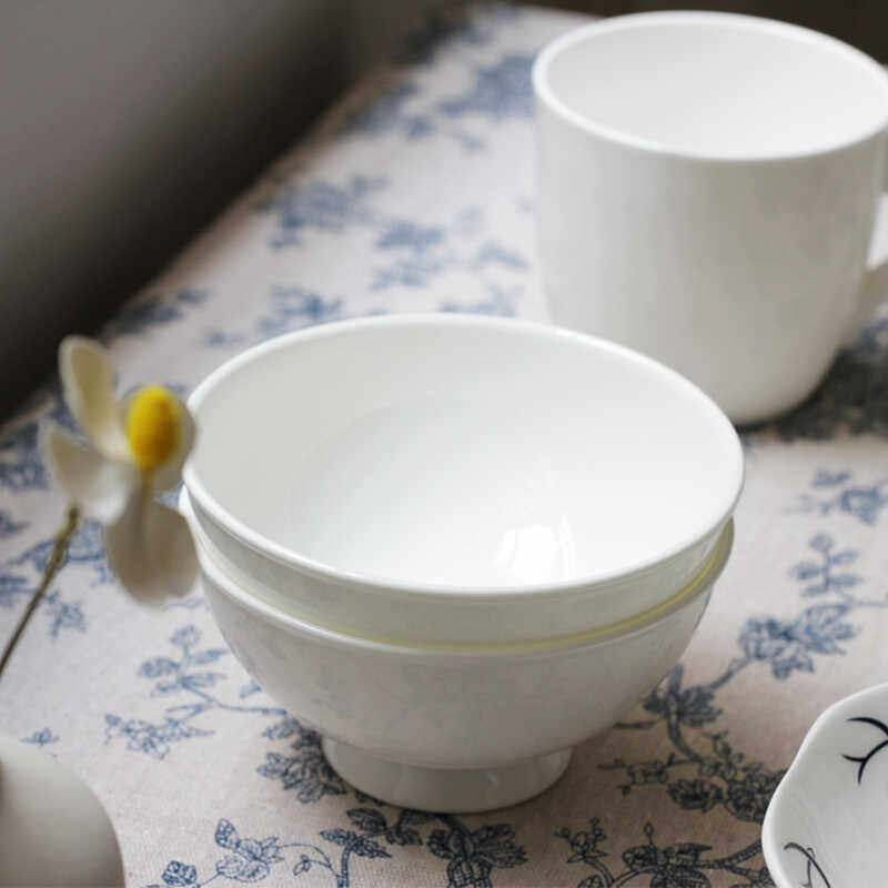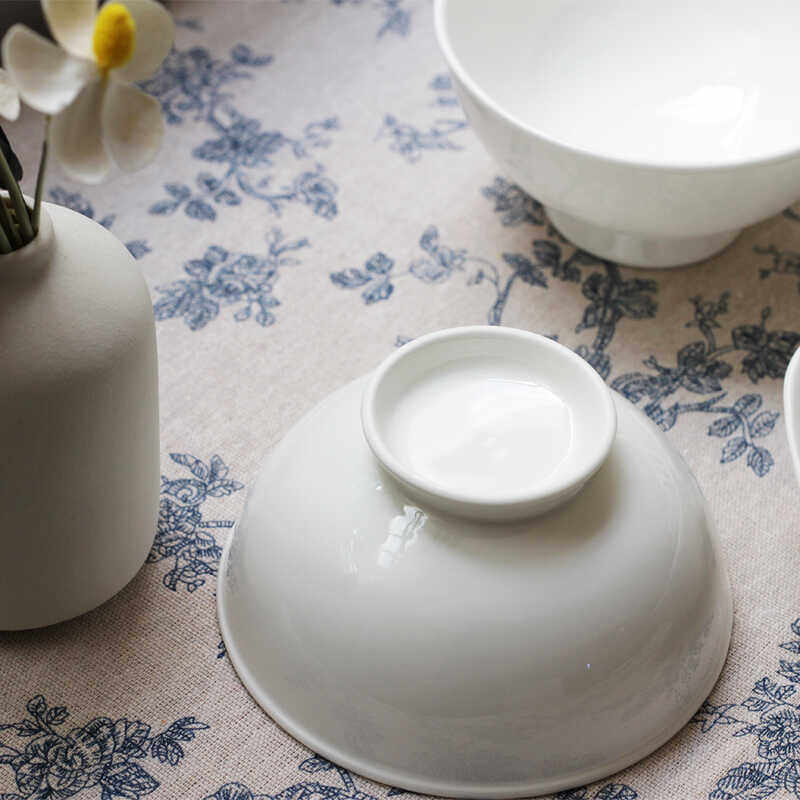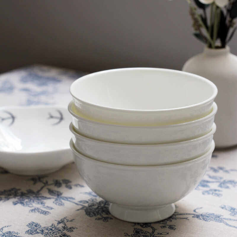 📚 唐山纯白骨瓷小碗陶瓷餐具家用汤碗面碗套装吃饭米饭碗防烫高脚碗