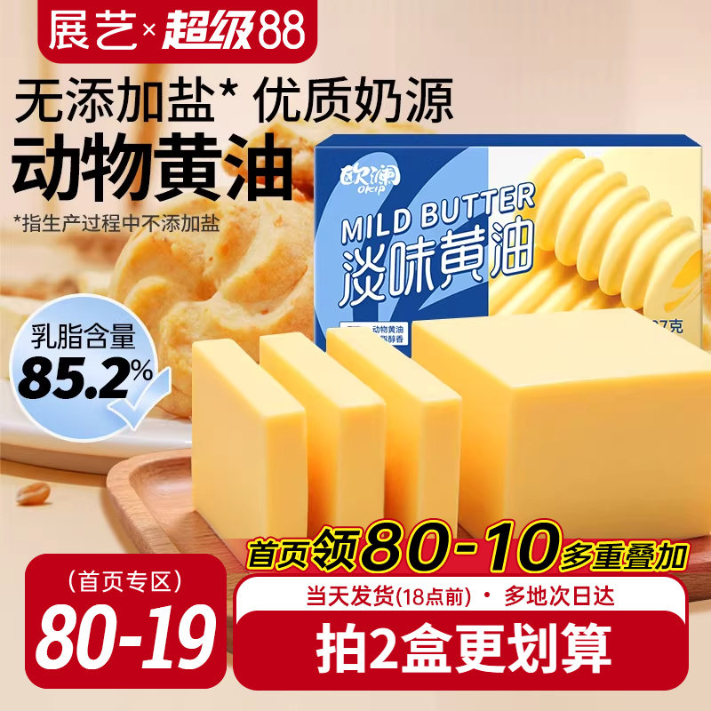 💥种草!展艺欧澜动物黄油家用无添加盐煎牛排专用面包蛋糕雪花酥烘焙,券后价仅17.5💥