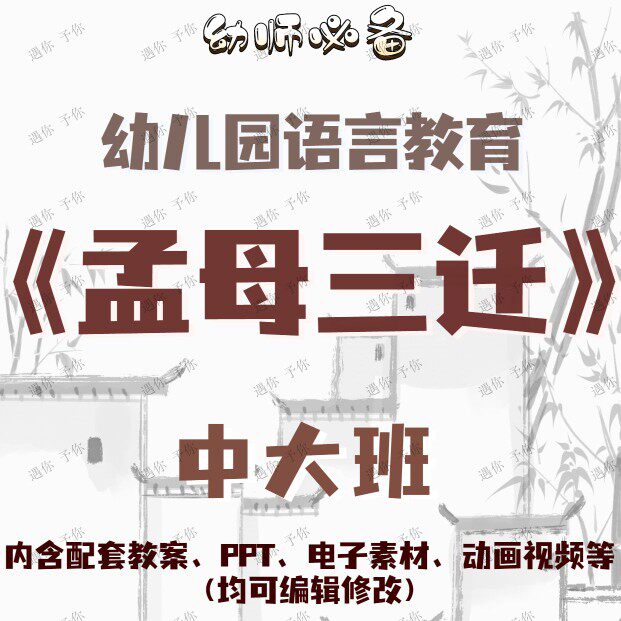 📚 幼儿语言教育故事孟母三迁教案教学ppt课件视频电子素材等中大班