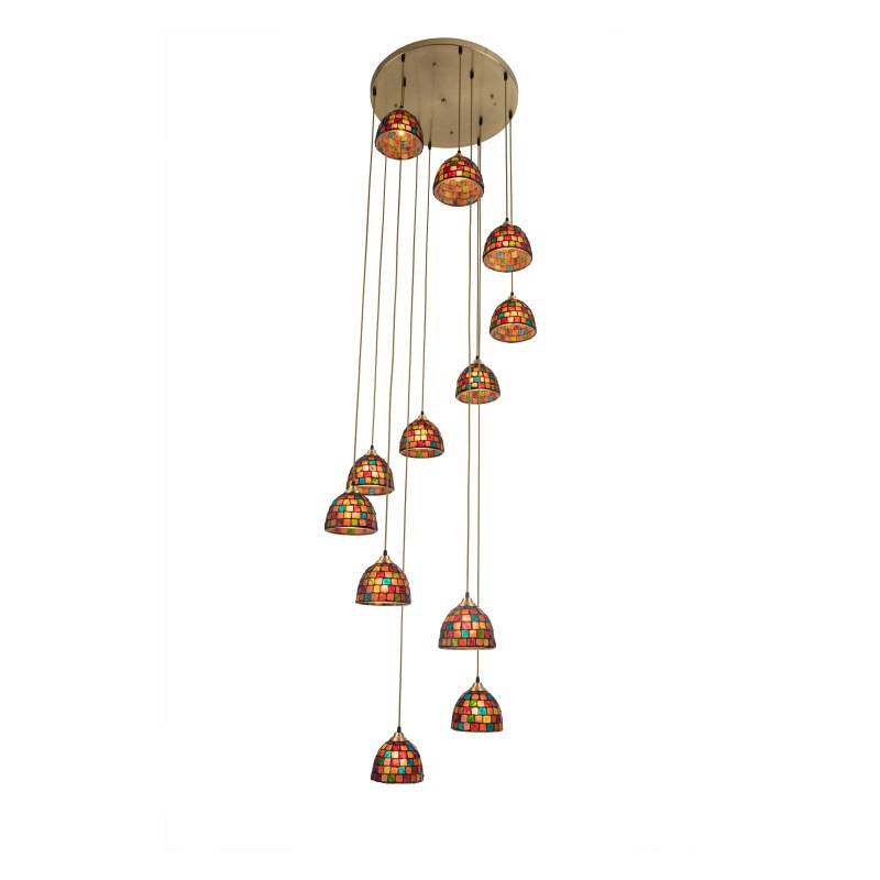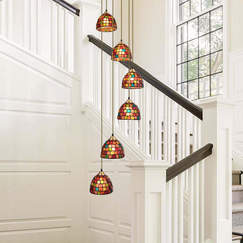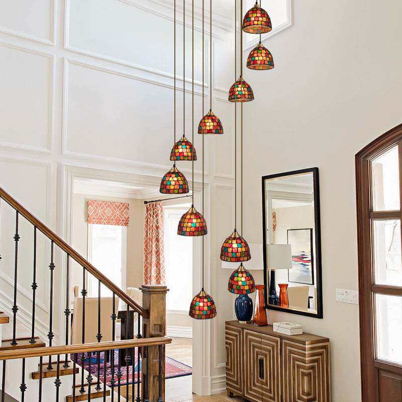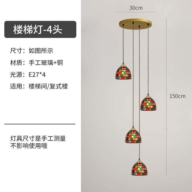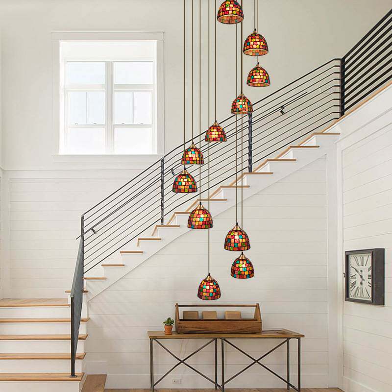 📚 美式复古复式楼别墅长吊灯民宿loft公寓楼梯间彩色玻璃装饰吊线灯