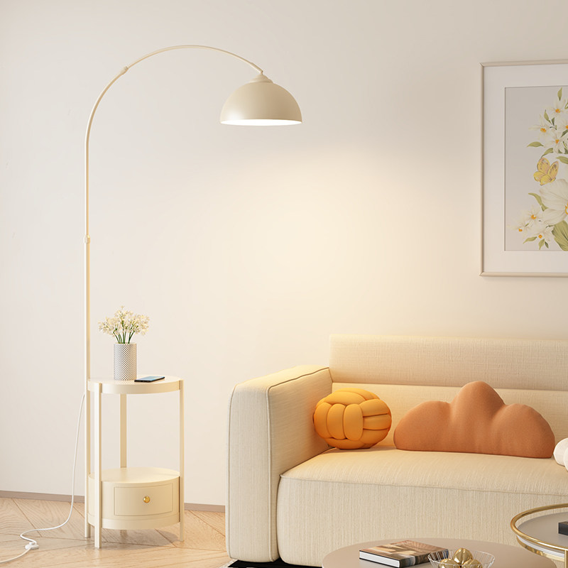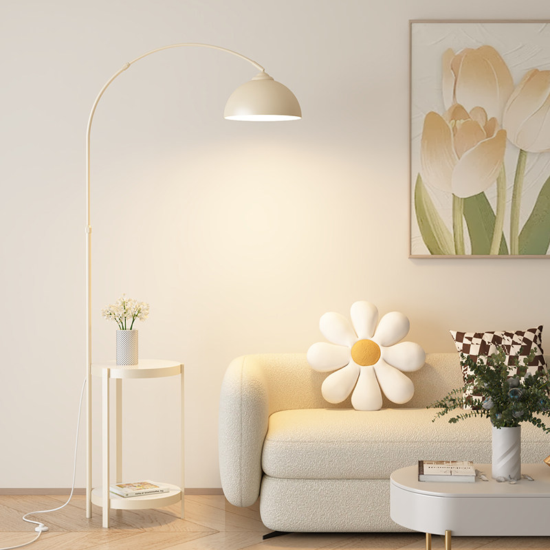 📚 法式奶油风钓鱼灯落地灯客厅卧室沙发旁边茶几置物架床头台灯一体