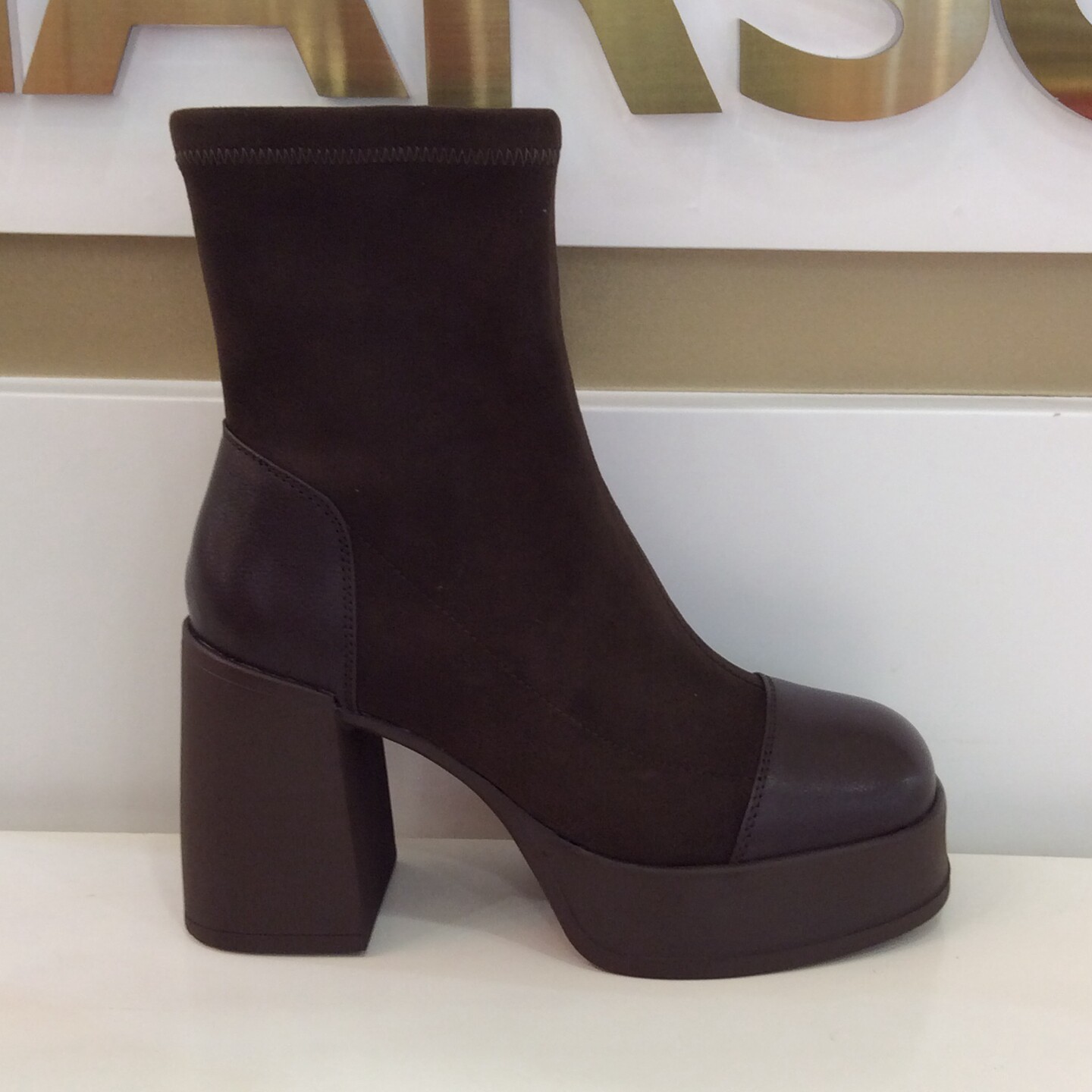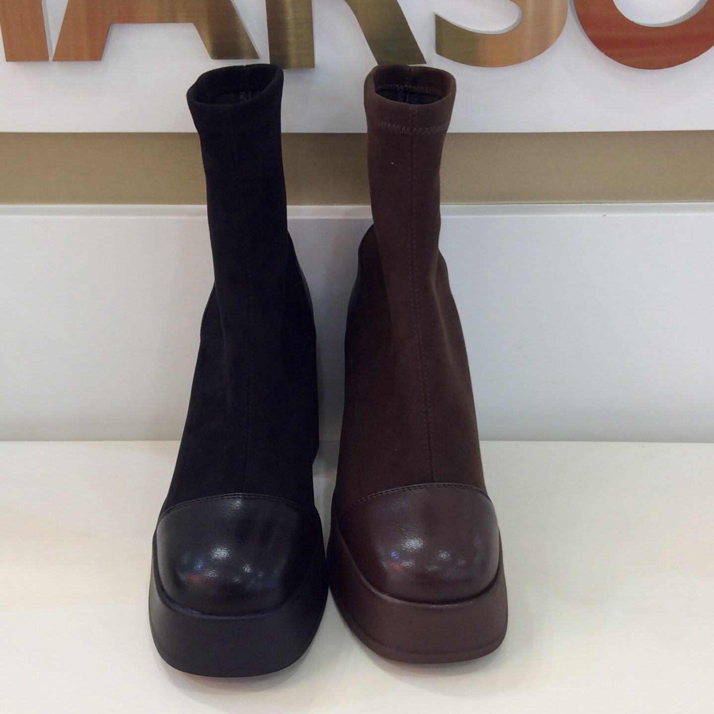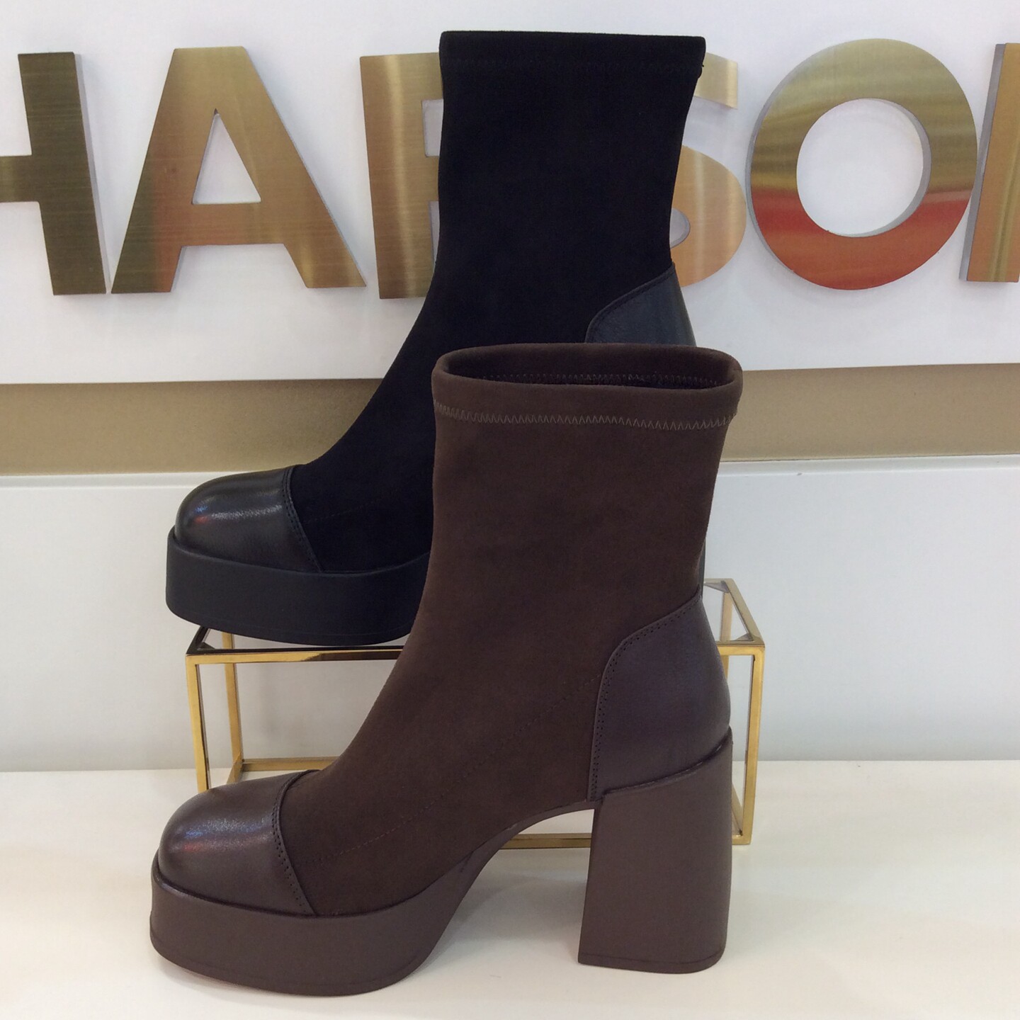 📚 哈森HARSON专柜正品2025冬季新款高粗跟圆方头套女短筒靴HA253409