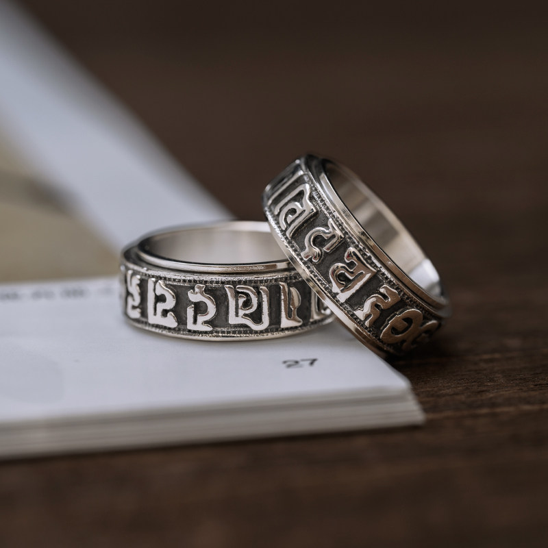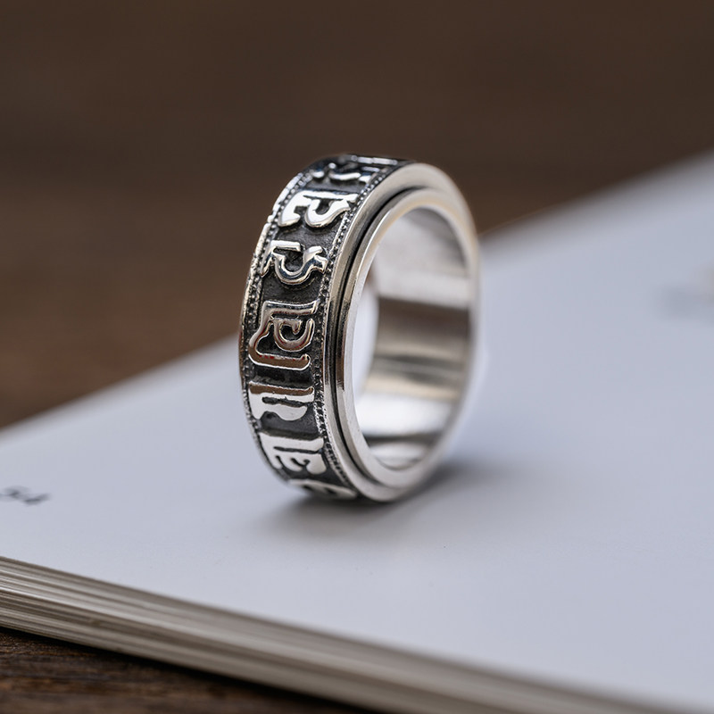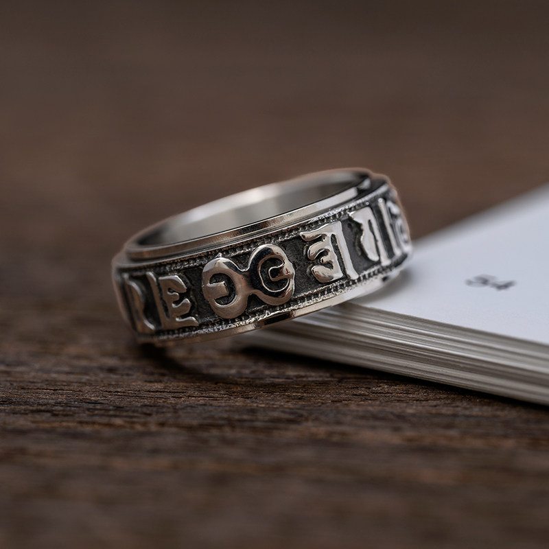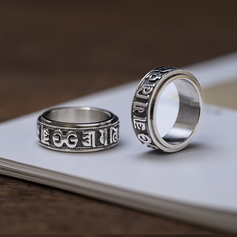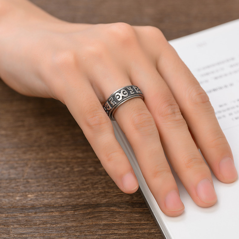 📚 六字真言大明咒六字箴言戒指男女旋转指环宽版美式复古配钛钢饰品
