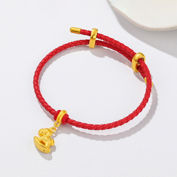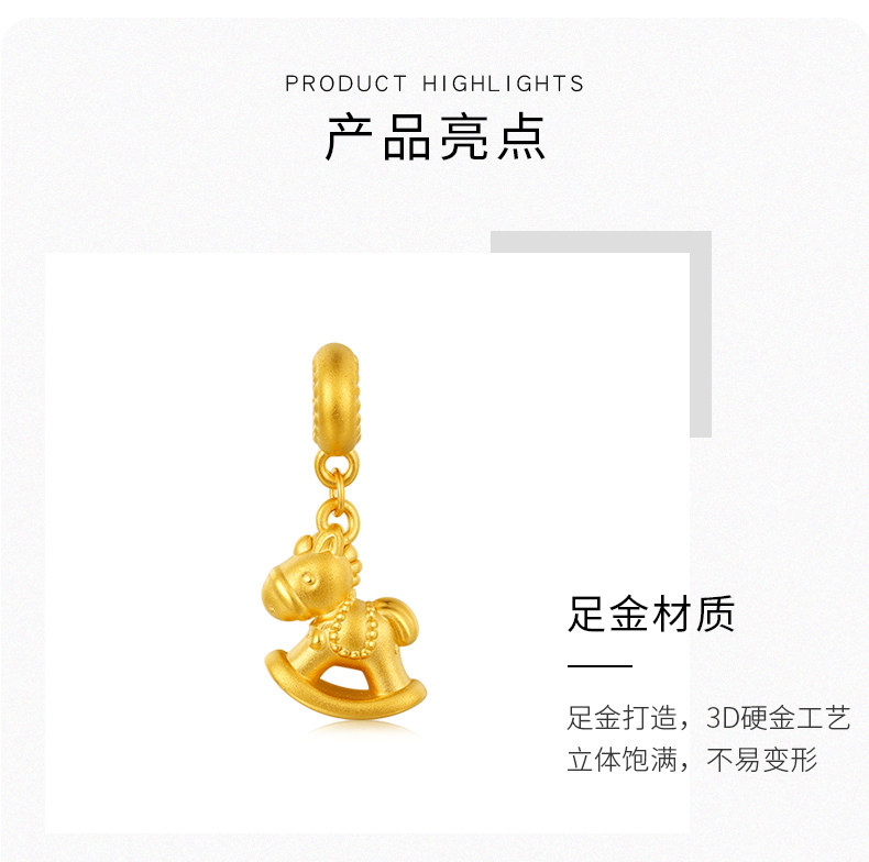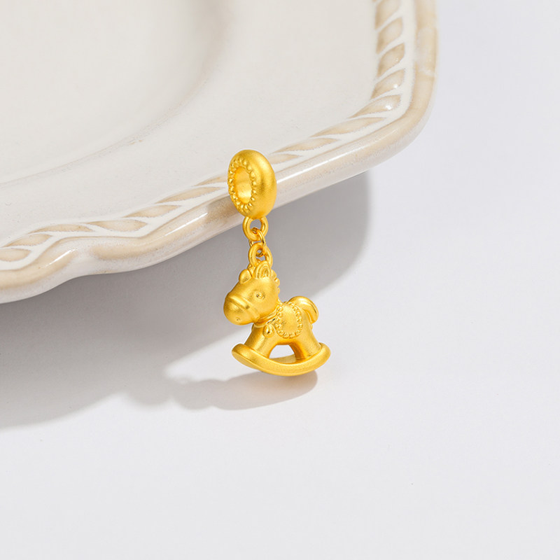 📚 足金马生肖黄金手链吊坠马年礼物女金马属马本命年金饰小木马挂坠