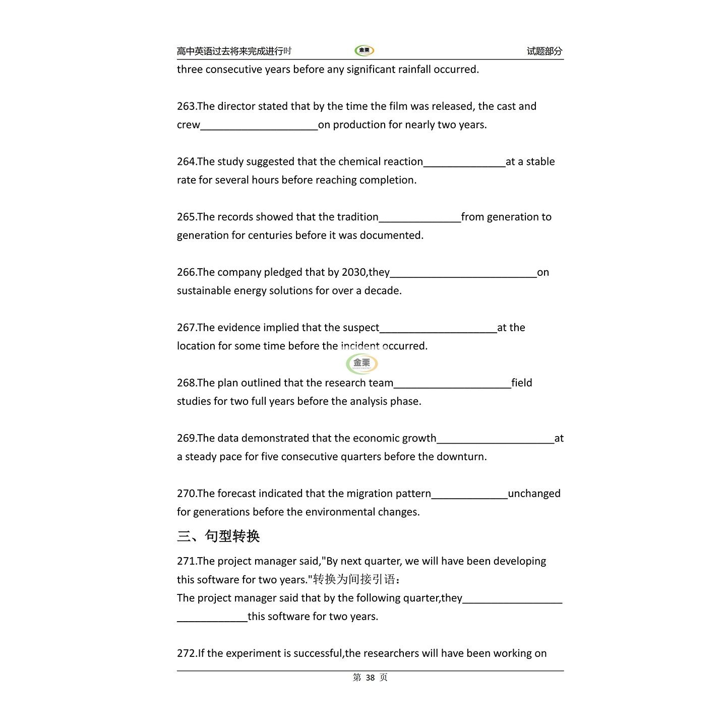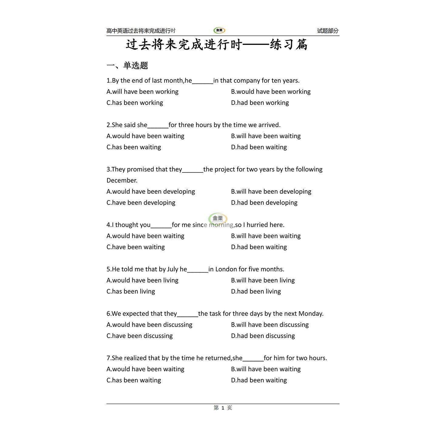 📚 高中英语过去将来完成进行时专项练习册含导图解析300题高考通用