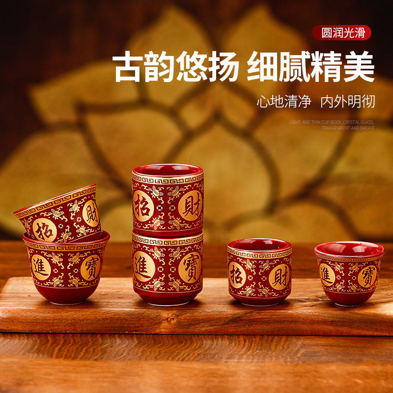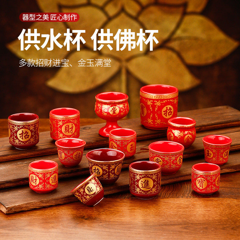 📚 供神茶杯陶瓷红色拜神奉神酒杯佛前供奉水杯寺庙佛堂供奉礼佛杯子