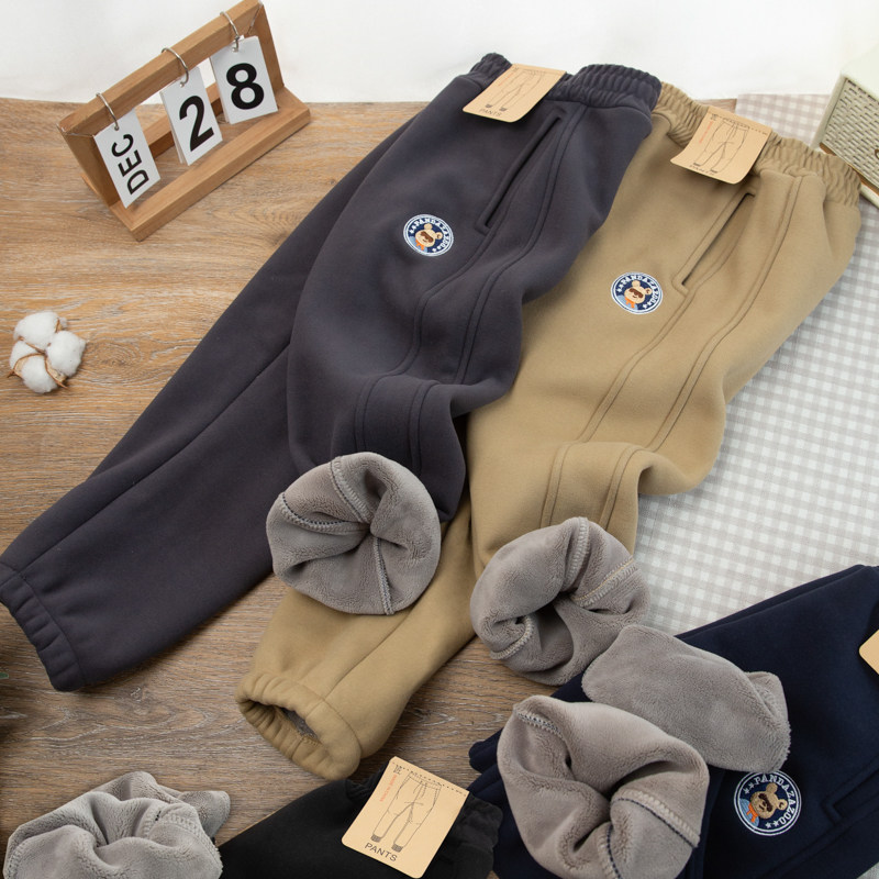 📚 男童裤子冬季2025新款中大童时尚小熊印花儿童装密密绒保暖休闲潮