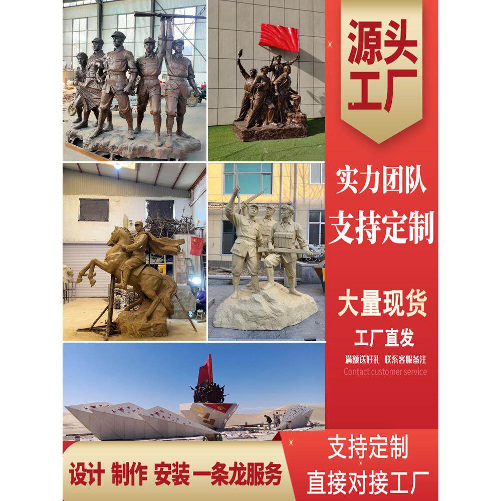 📚 玻璃钢铸铜彷铜人物雕塑民俗农耕校园红军文化大型摆件支持 定制