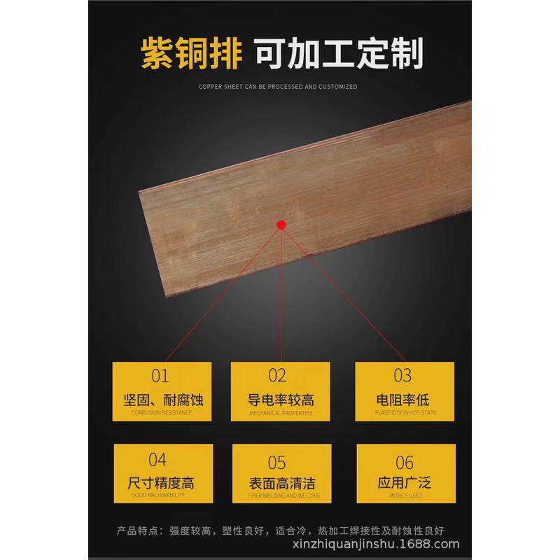 📚 现货供应t2紫铜排导电汇流可强导热性切割分条零售软态紫铜排