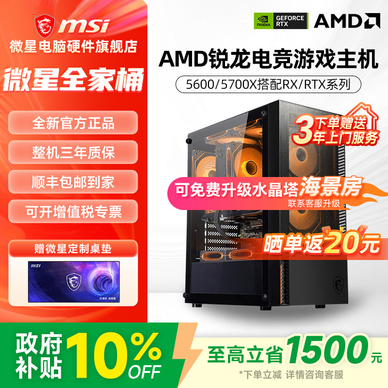 📚 微星AMD锐龙主机R5 5600/5700X/RTX5060Ti/7650GRE/6500XT台式电脑整机办公游戏电竞直播DIY组装机海景房