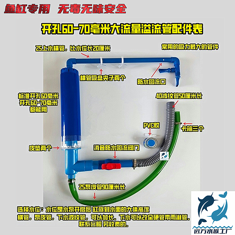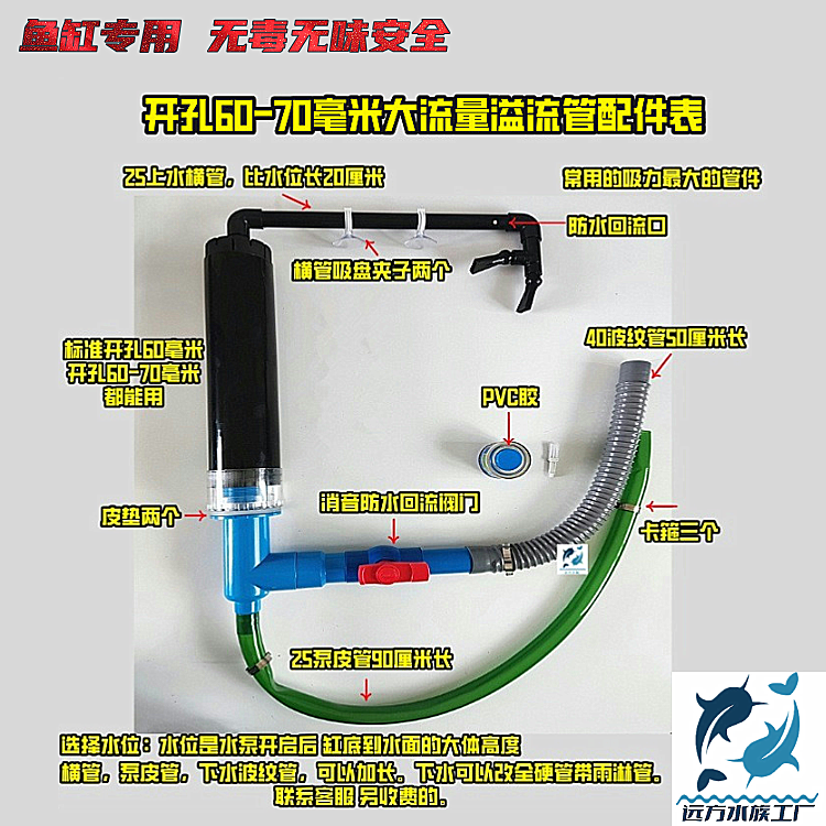 📚 鱼缸过滤器配件三重溢流管整套管件60孔65孔70孔大流量diy上下水