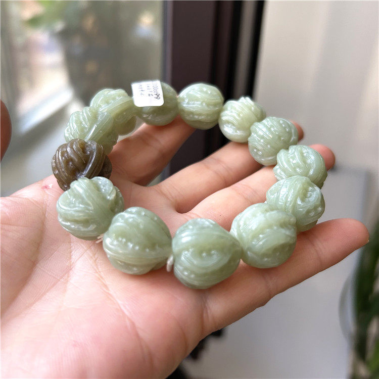 📚 天然黄白老玉核桃手串手链原物实拍和田玉手串正品岫岩玉石手串