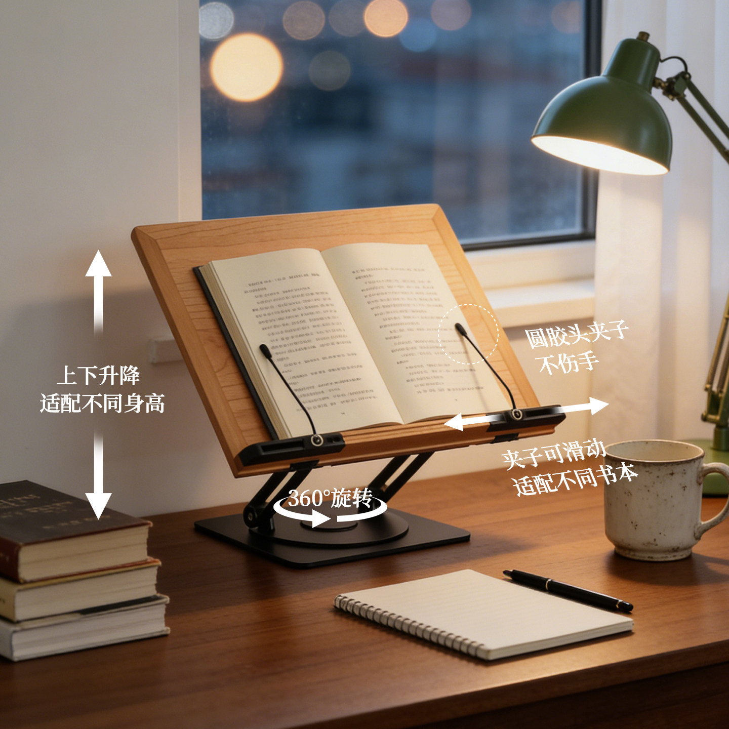 📚 三思工房木质阅读架可升降旋转读书架儿童看书神器iPad支架黑胡桃