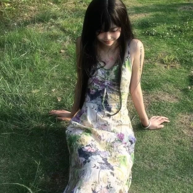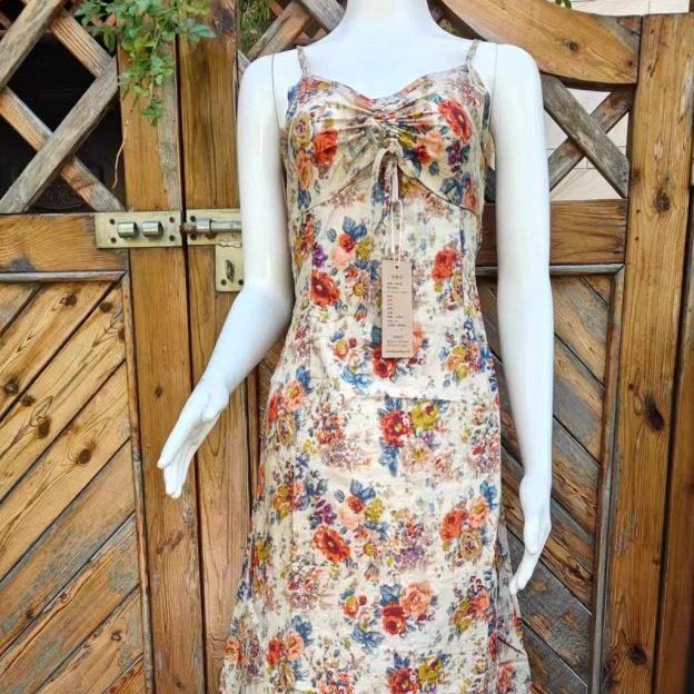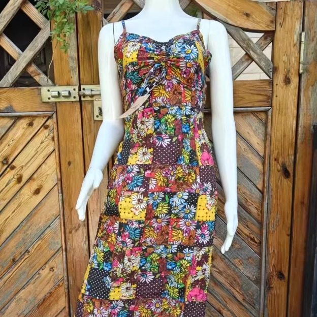📚 帛衣苑工厂店竹节纯棉长款修身吊带连衣裙山鸟画MM出游打卡不二选