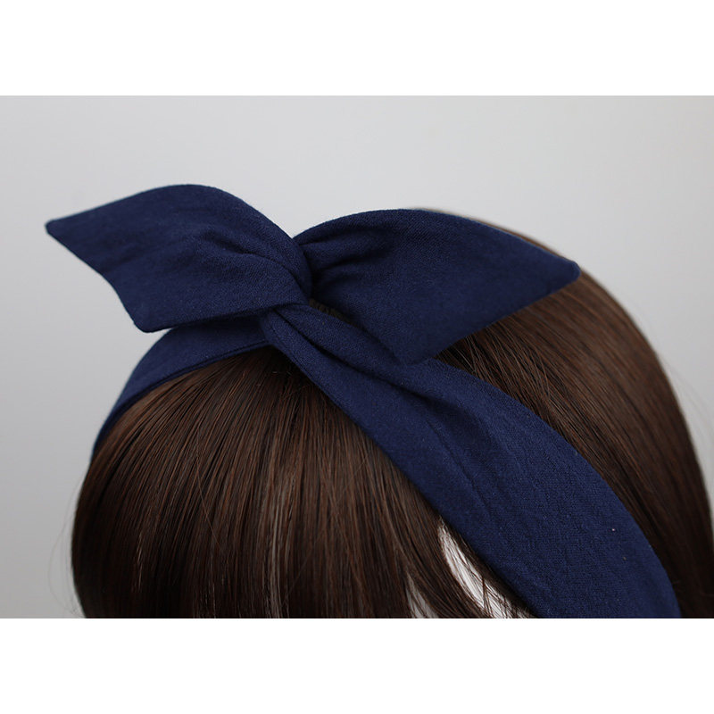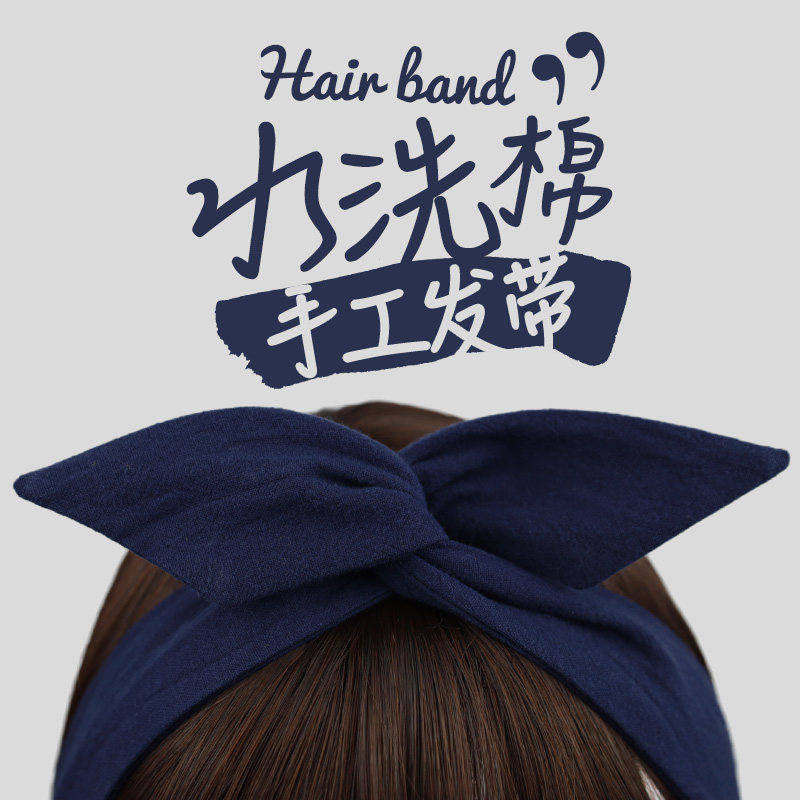 📚 纯色藏青色肌理纹水洗棉复古日系森女兔耳朵铁丝发带女绑发饰发箍