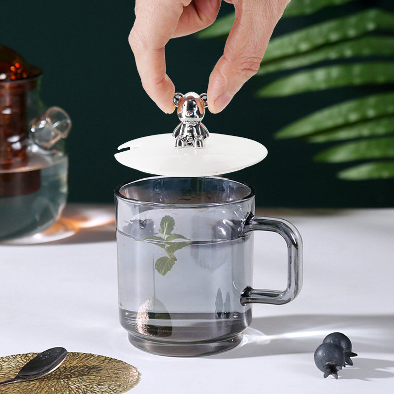 📚 塑料高颜值马克杯盖卡通熊杯盖网红塑料盖牛奶早餐杯盖不含杯子