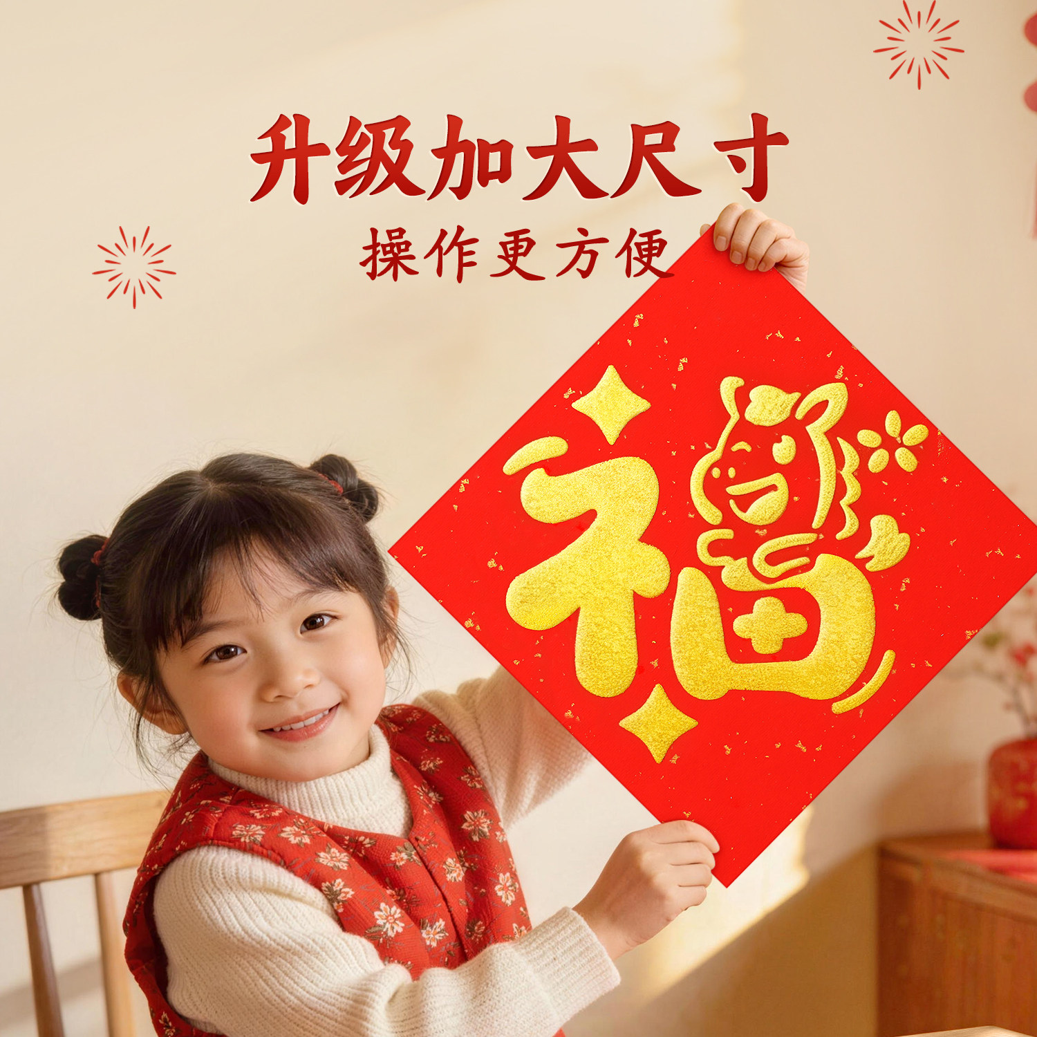 📚 2026马年福字拓印工具模板手工diy材料包儿童新年非遗年画小学生